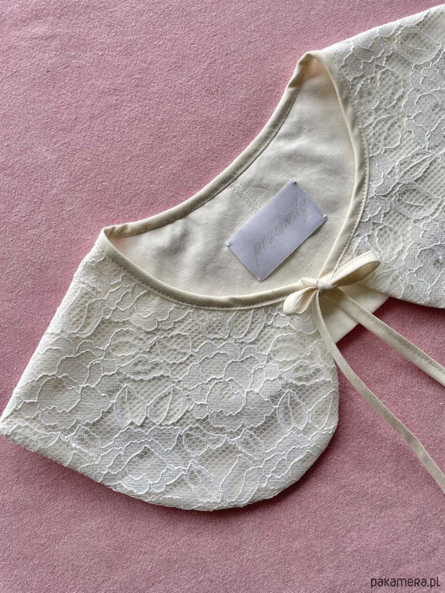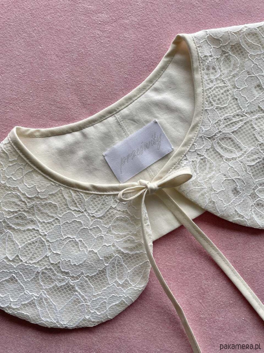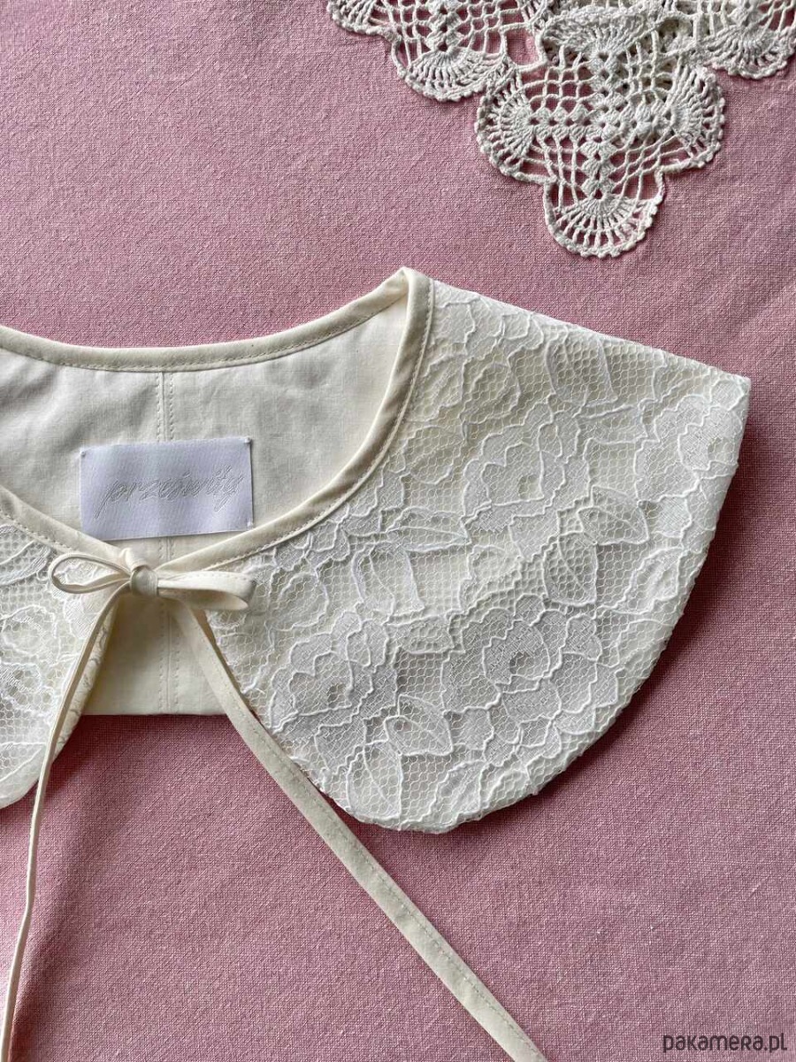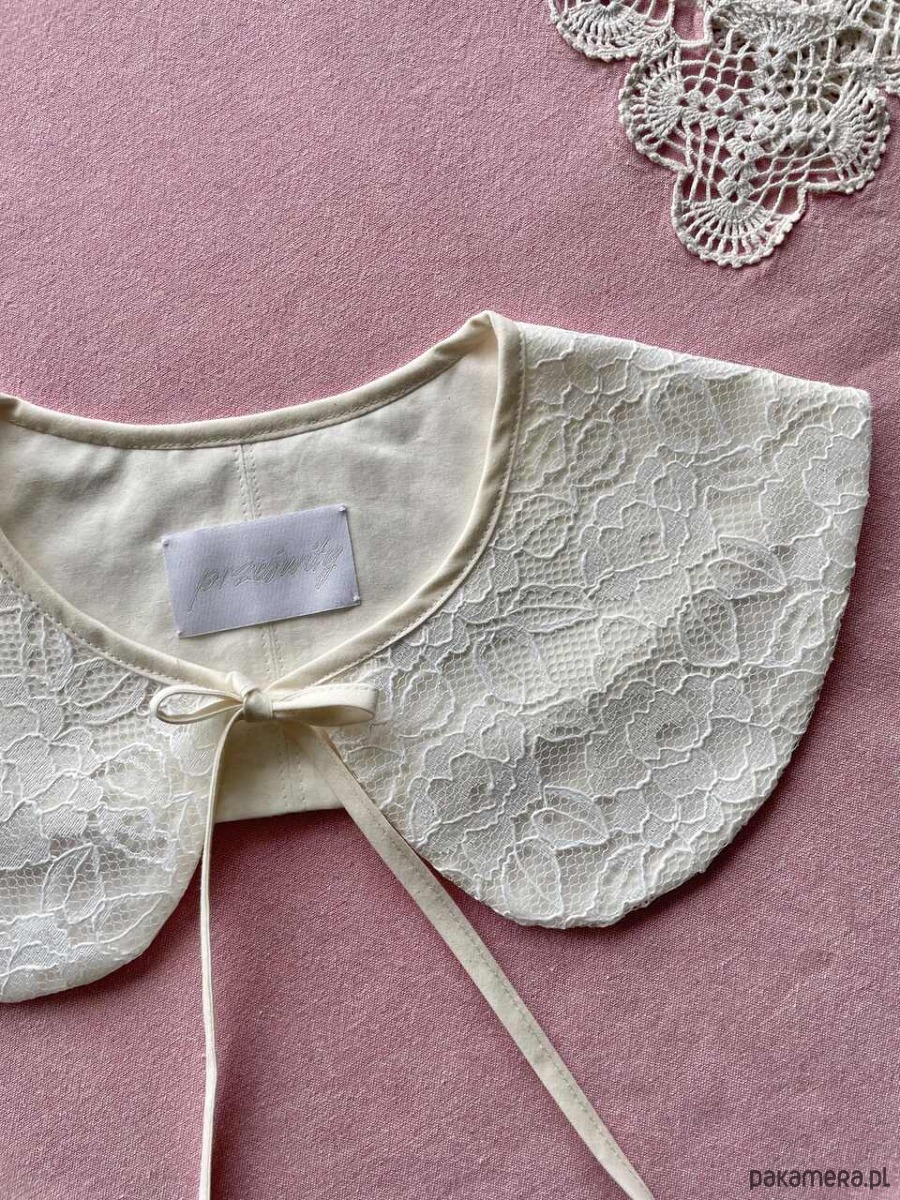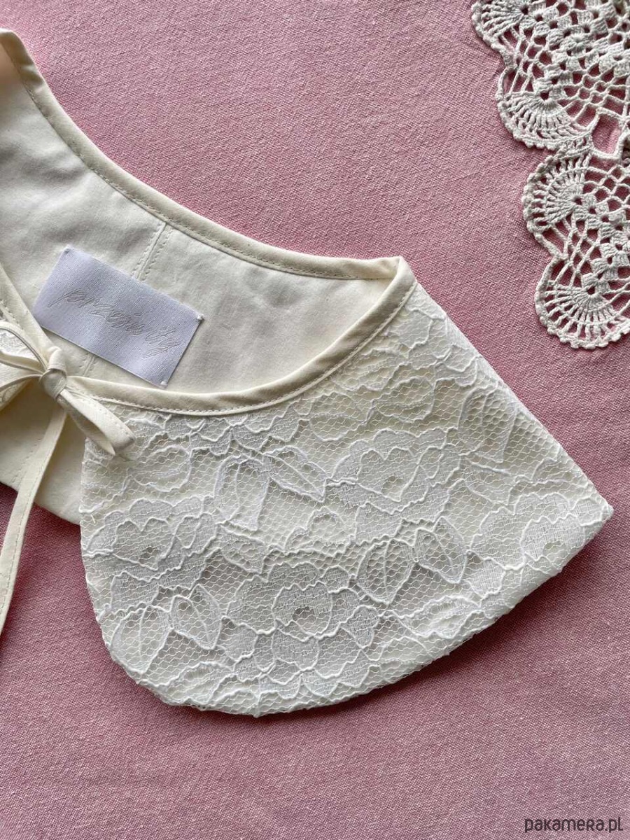 Kołnierzyk koronkowy uszyty ręcznie z firanki z drugiego obiegu z bawełnianą podszewką.