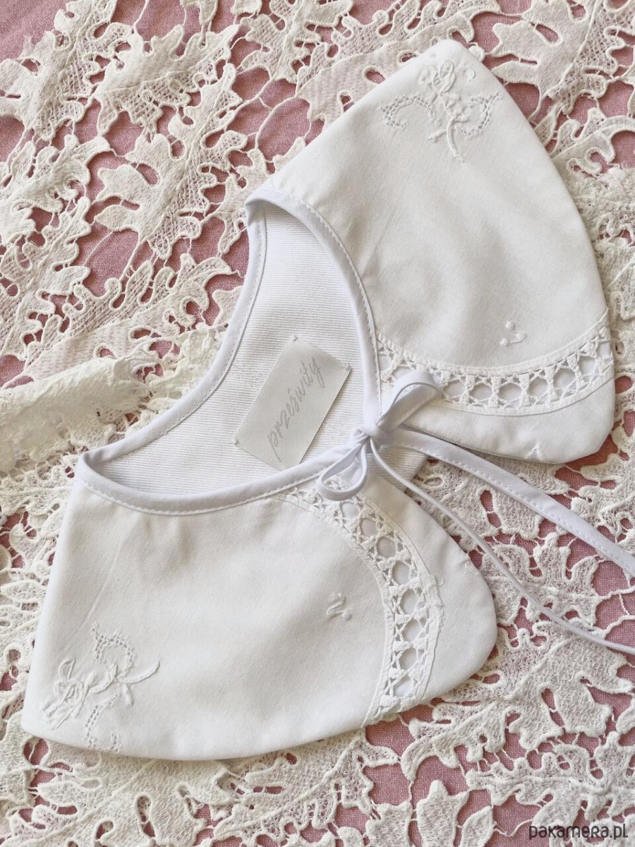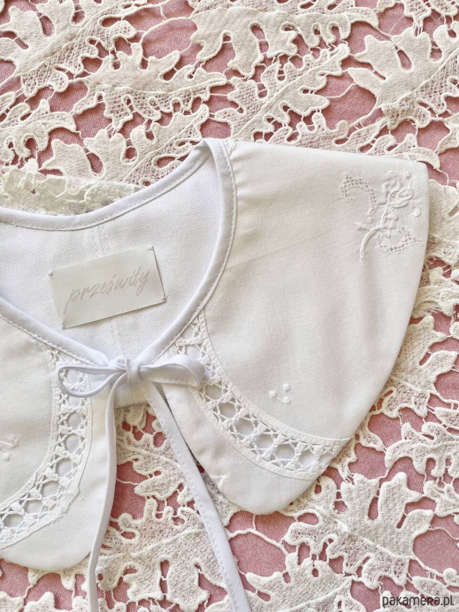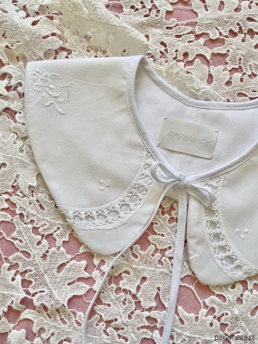 Kołnierzyk uszyty ręcznie z bawełnianego obrusa z drugiego obiegu.