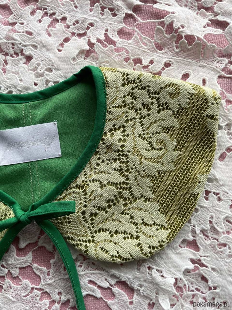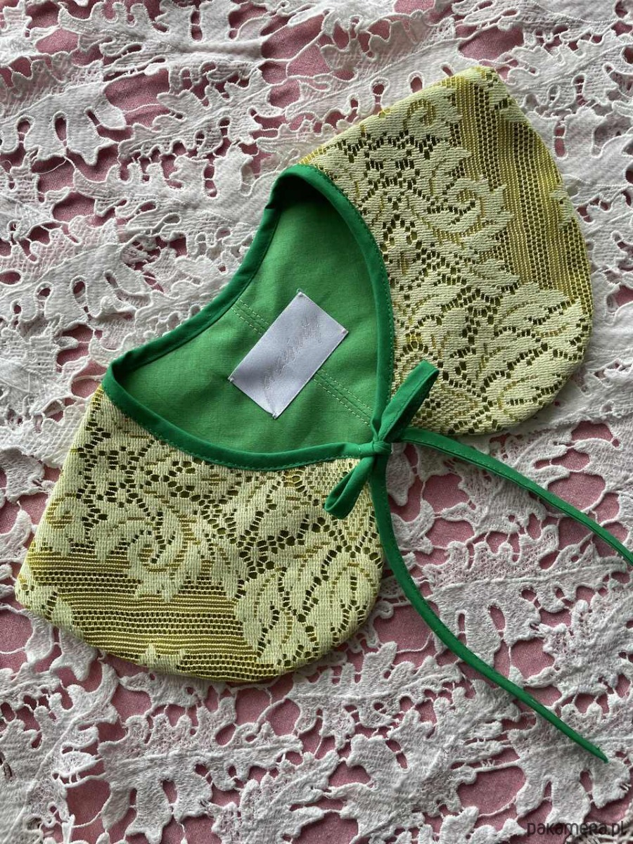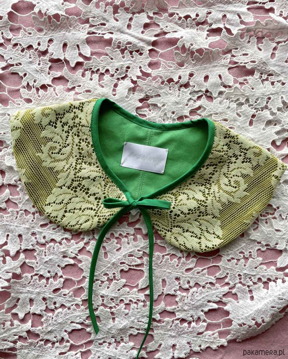 Kołnierzyk uszyty ręcznie z firanki z drugiego obiegu z bawełnianą podszewką.