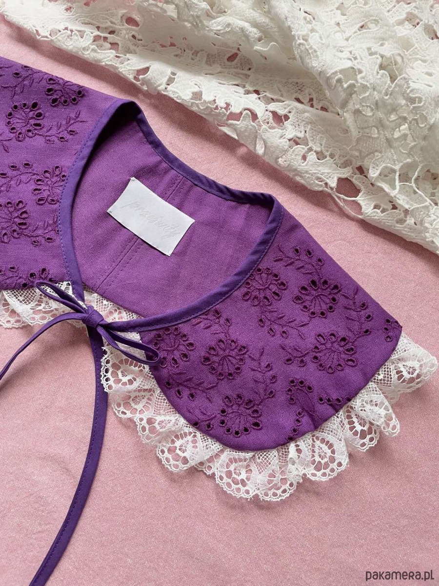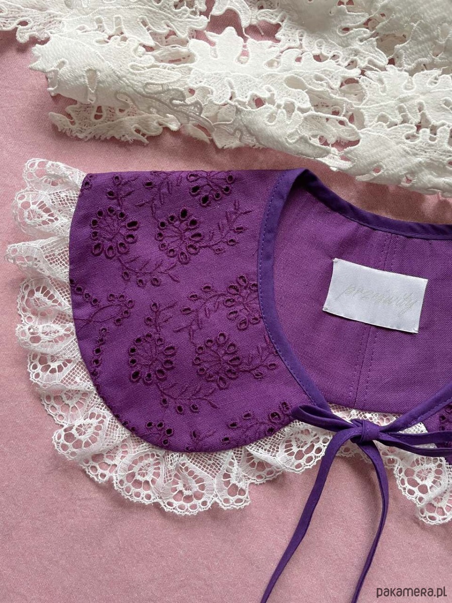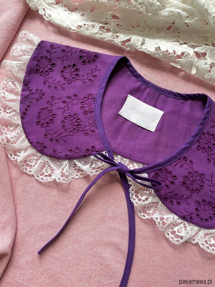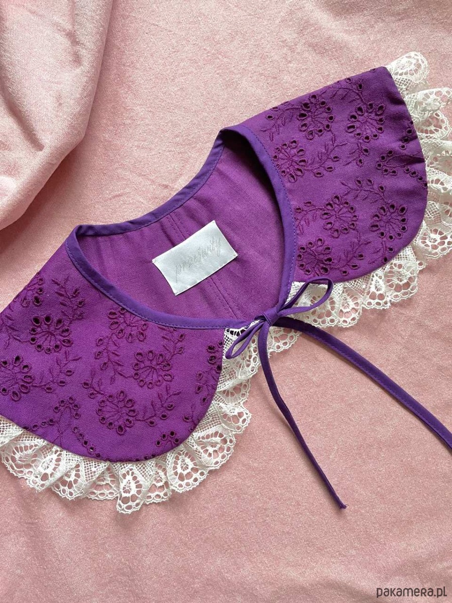 Kołnierzyk uszyty ręcznie z bawełnianego obrusa z drugiego obiegu.