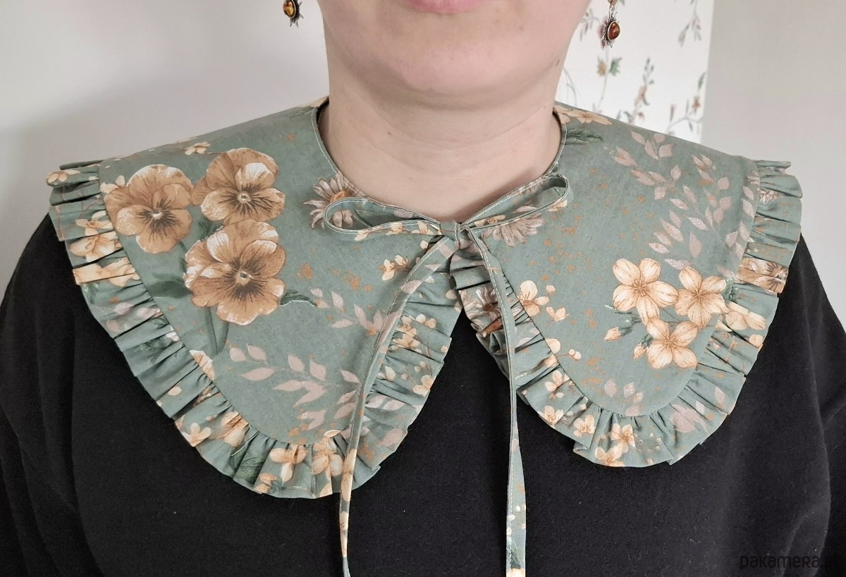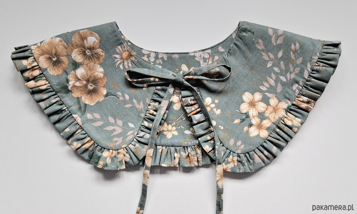 Kołnierzyk uszyty z tkaniny bawełnianej doda charakteru Twojej stylizacji. Do bluzy, sukienki czy sweterka. Wiązanie z przodu ułatwia dopasowanie.
