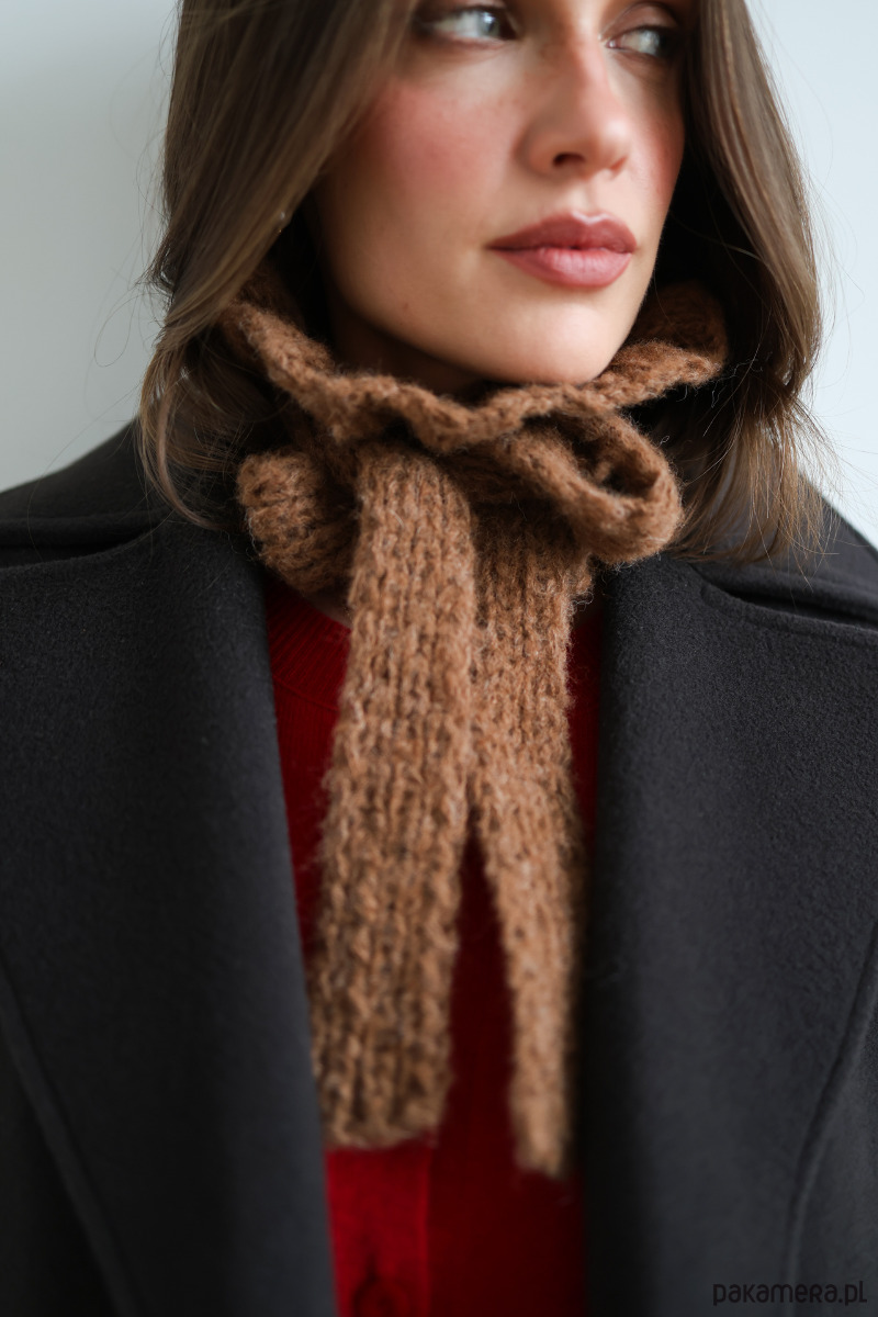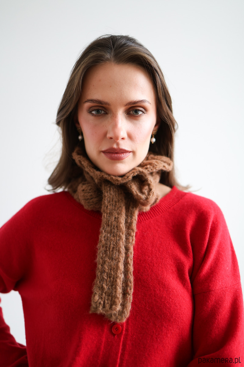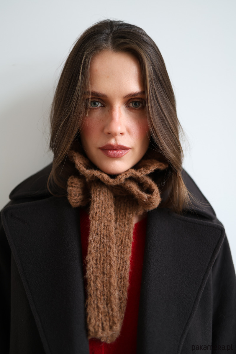 Whisper to wiązany kołnierzyk wykonany z wyjątkowo miękkiej baby alpaki – lekkiej, ciepłej i przyjemnej dla skóry. Miękko układa się wokół szyi, tworząc subtelną falbankę, która nadaje całości romantycznego charakteru. To alternatywa dla klasycznych dodatków – bardziej zmysłowa, bardziej szlachetna, bardziej „blisko”. Pięknie dopełnia zarówno proste swetry, jak i płaszcze, dodając stylizacji miękkości i wyrafinowania.