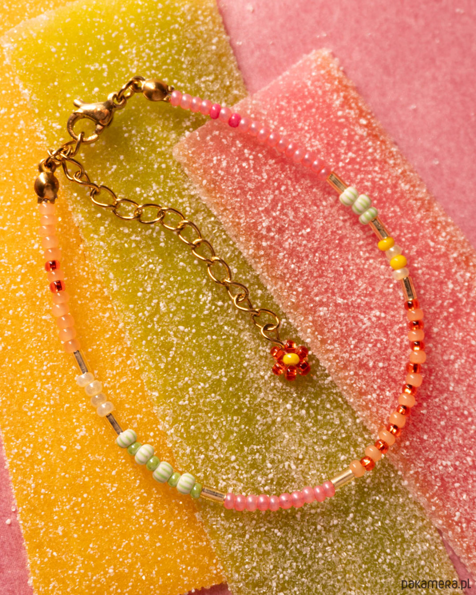 bransoletka ze szklanych czeskich koralików w uroczym cukierkowym kolorze