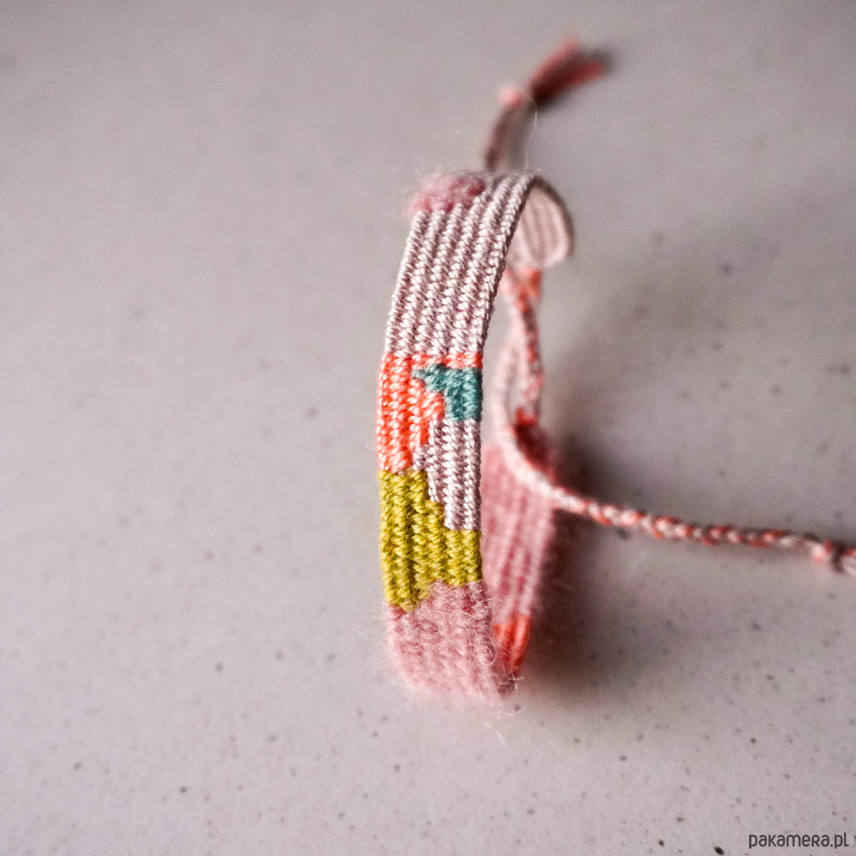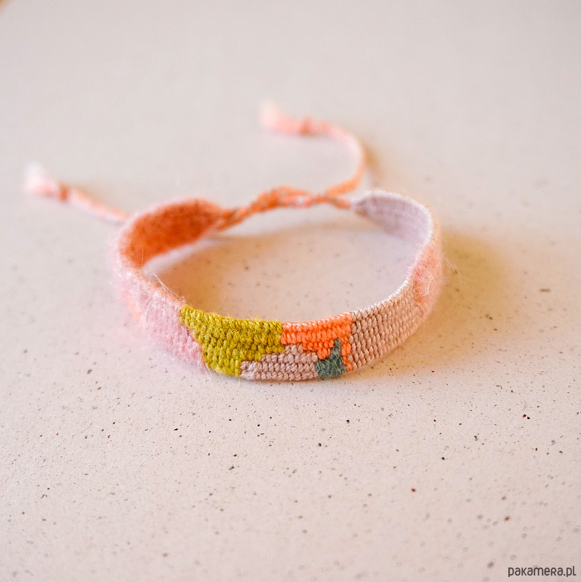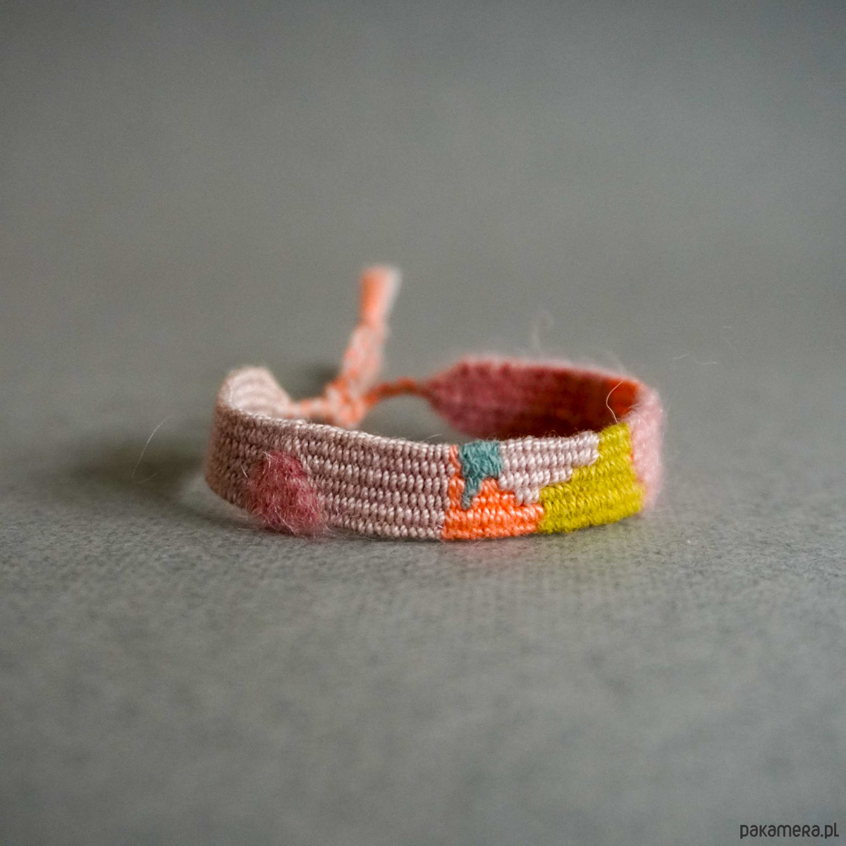 Kolorowa bransoletka tkana z muliny i włóczki na sznurku