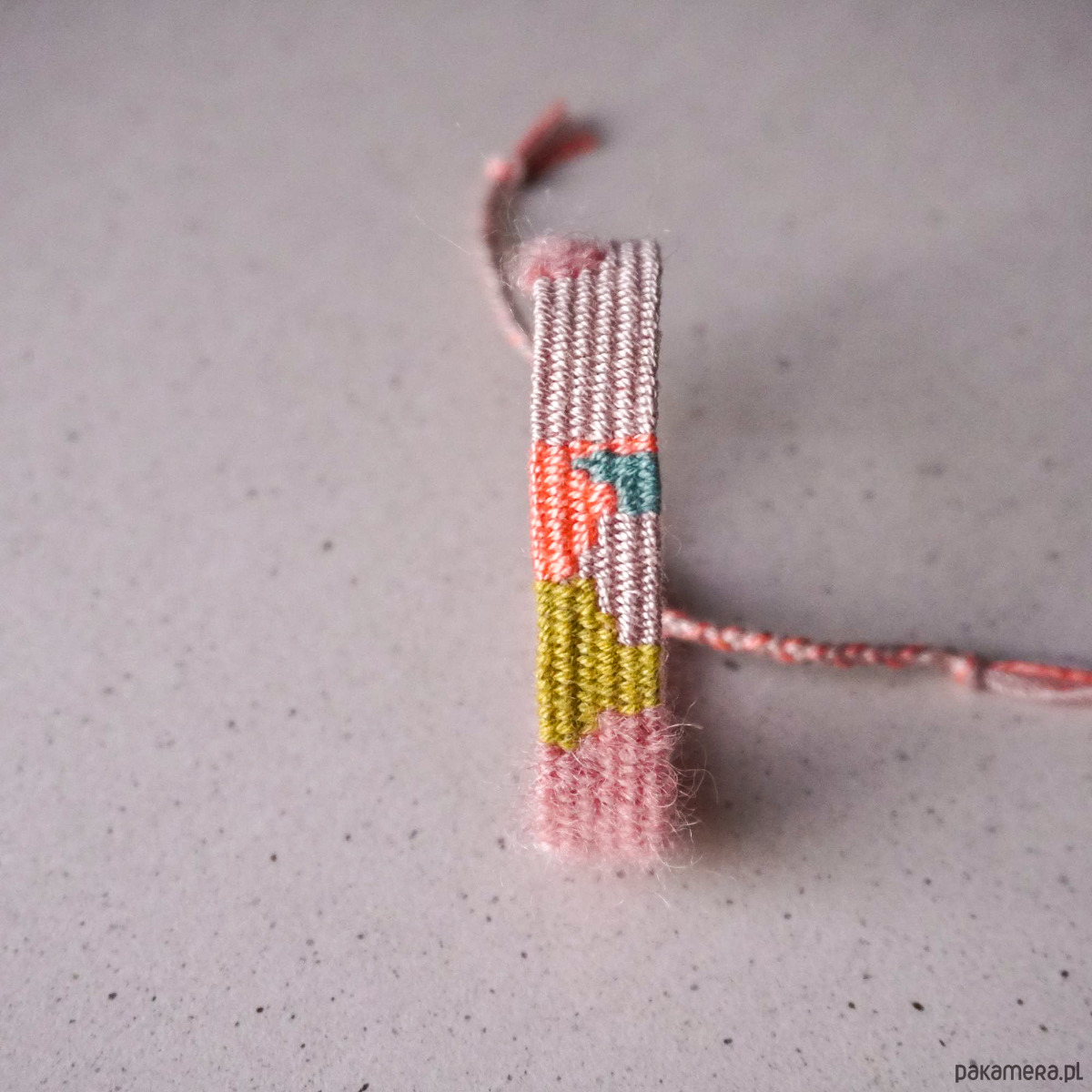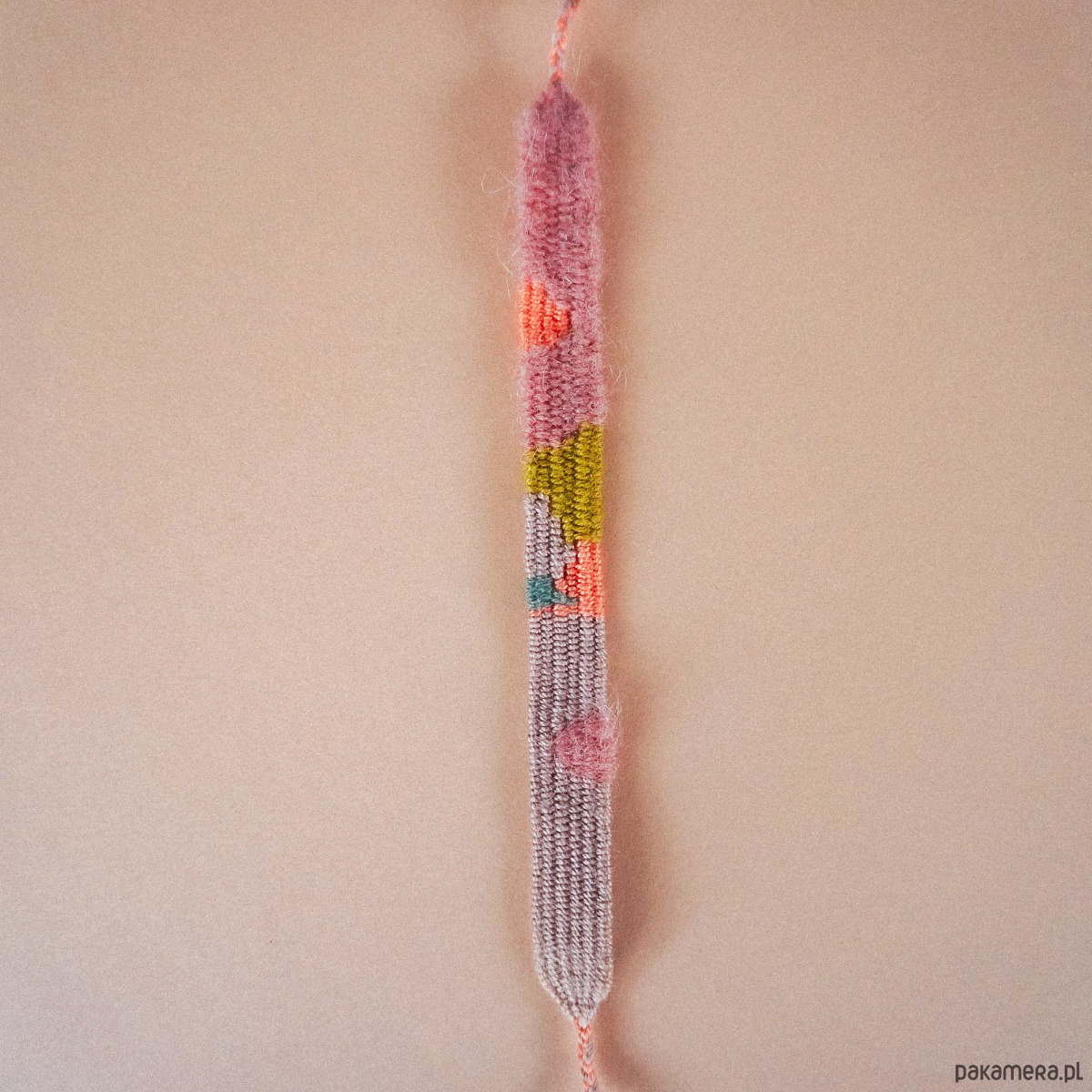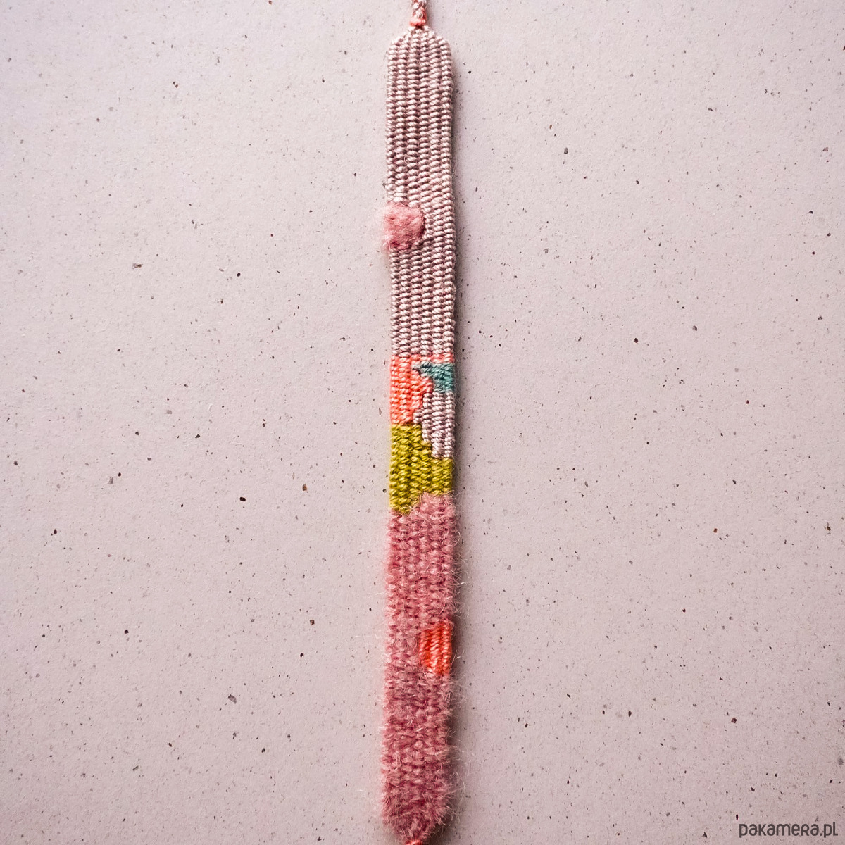 Kolorowa bransoletka tkana z muliny i włóczki na sznurku