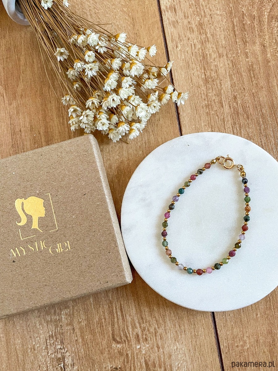 Ręcznie robiona bransoletka z kolorowego turmalinu z zapięciem.