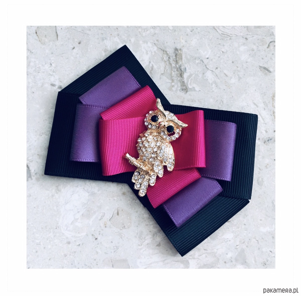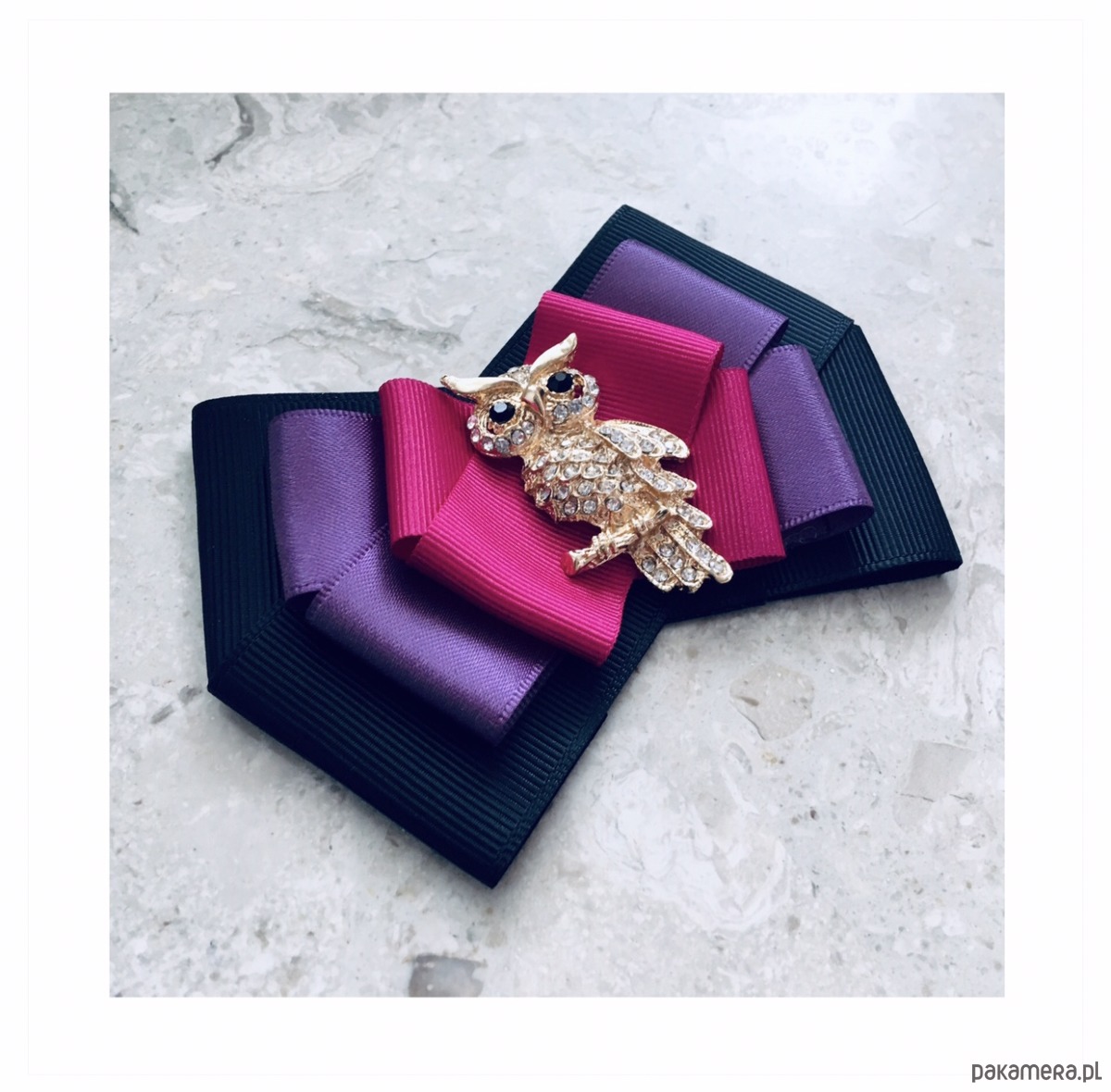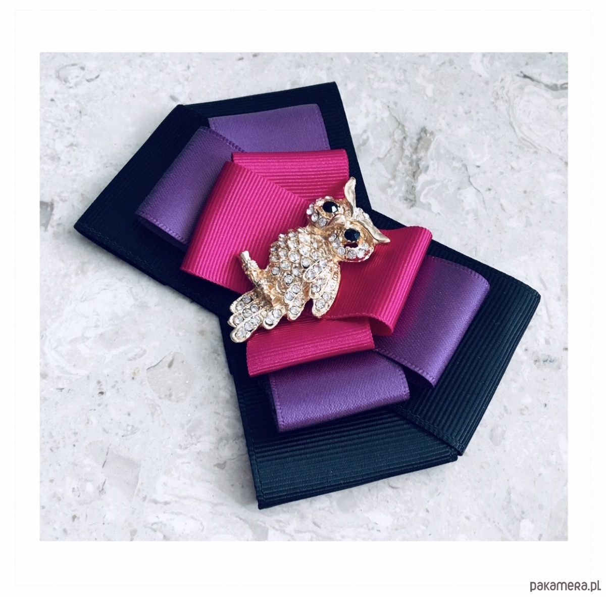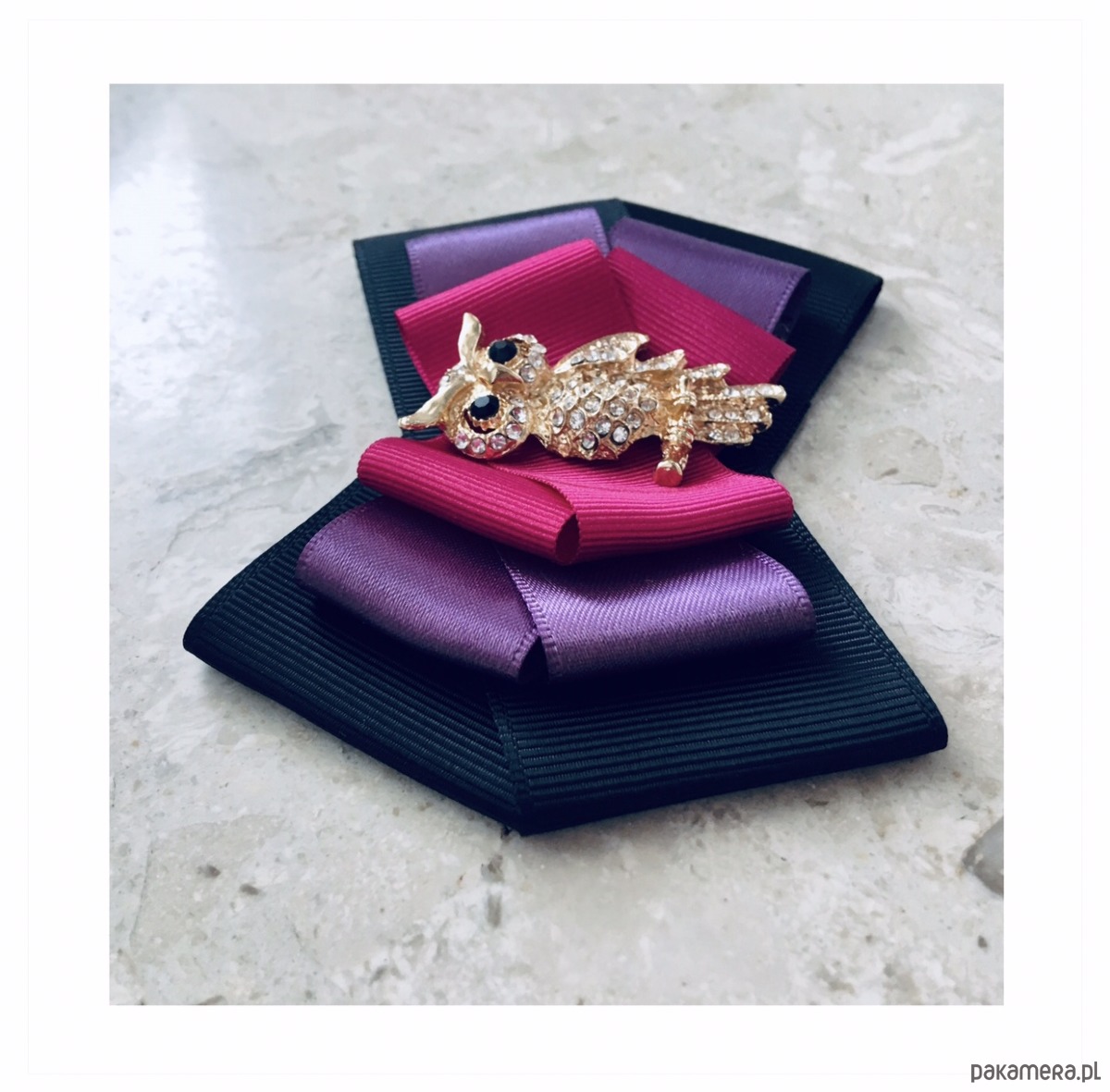 Broszka w kolorach czarnym fioletowym i fuksji.
