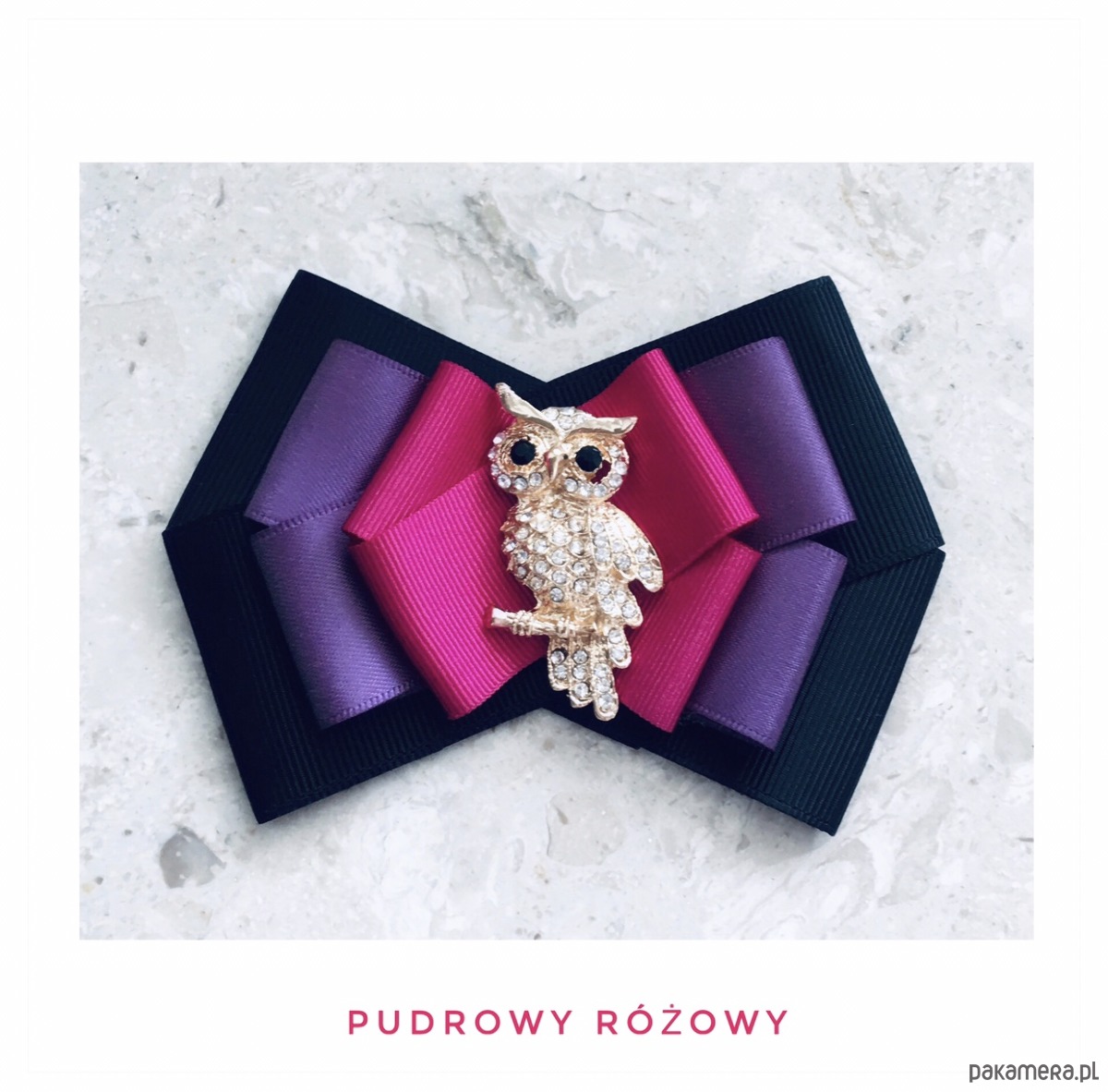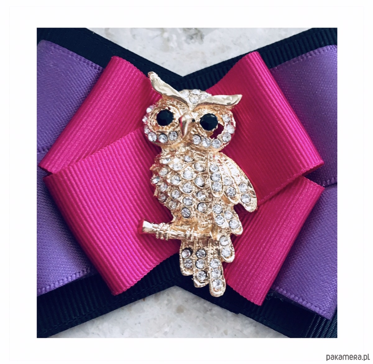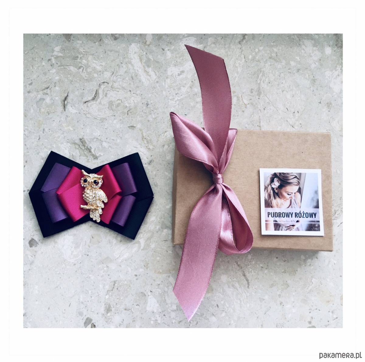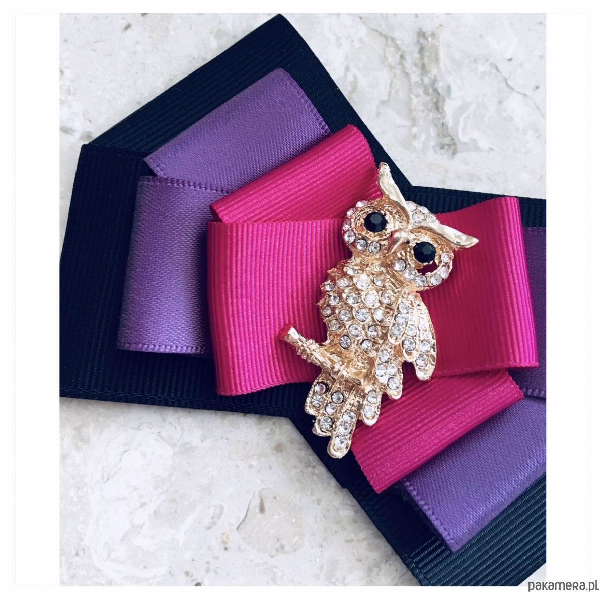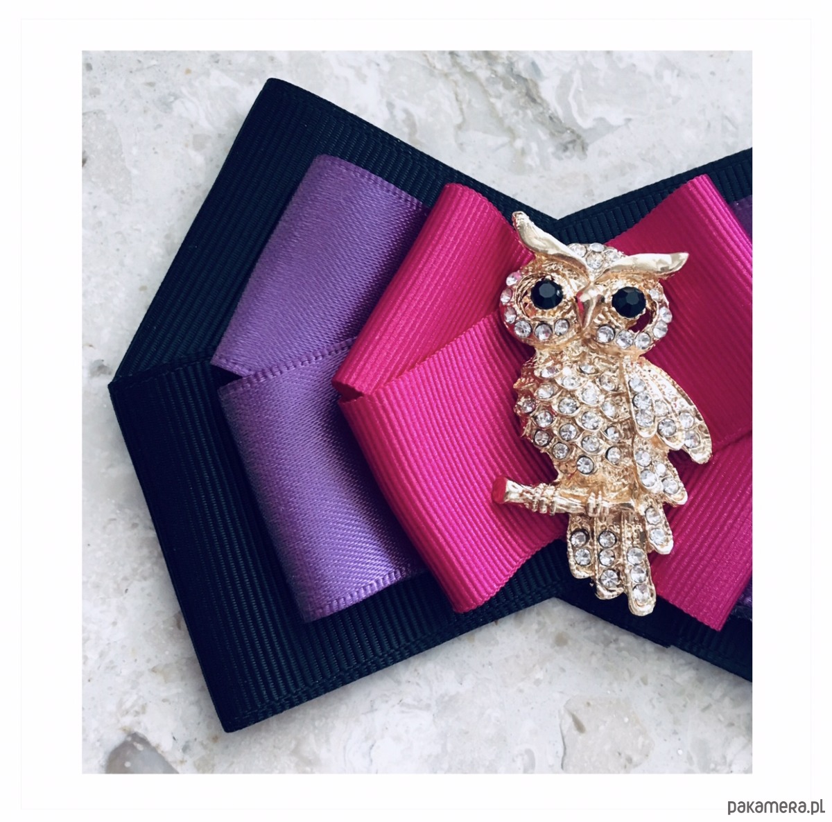 Broszka w kolorach czarnym fioletowym i fuksji.