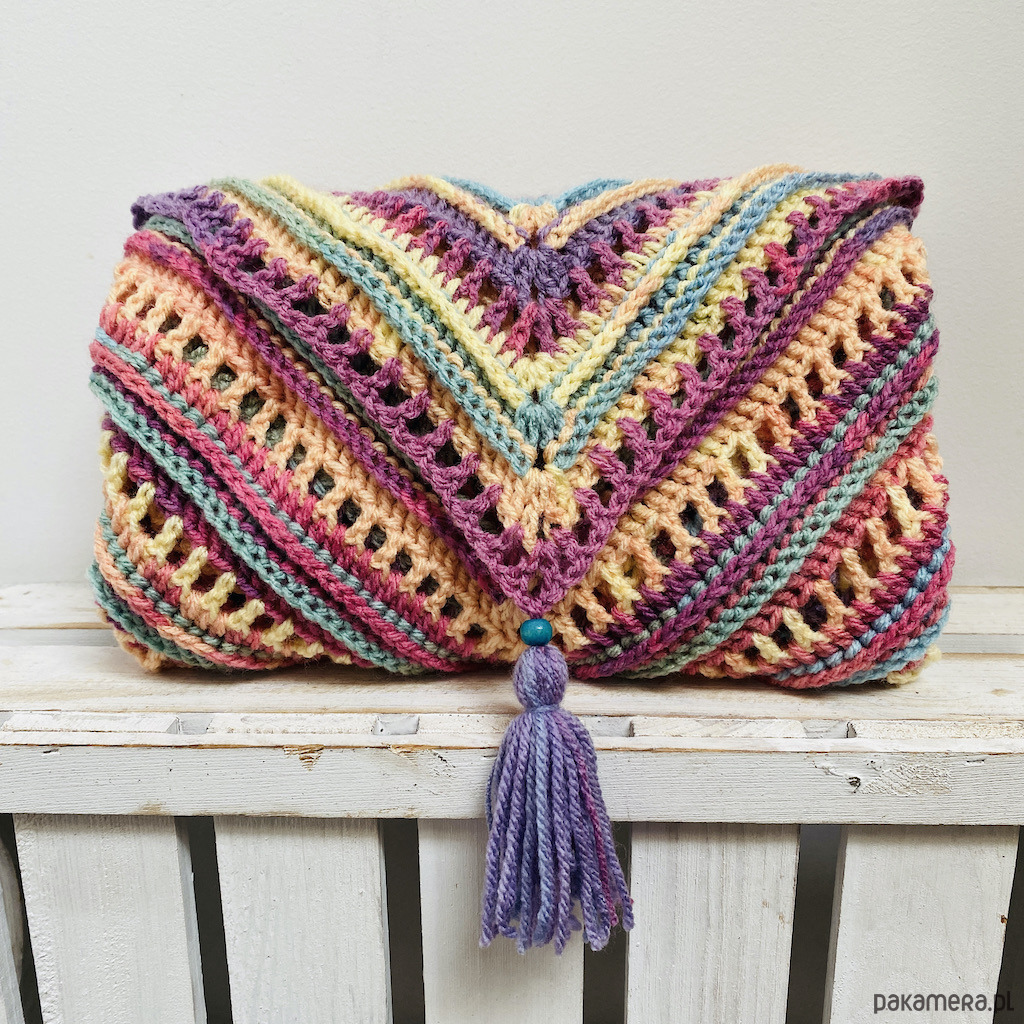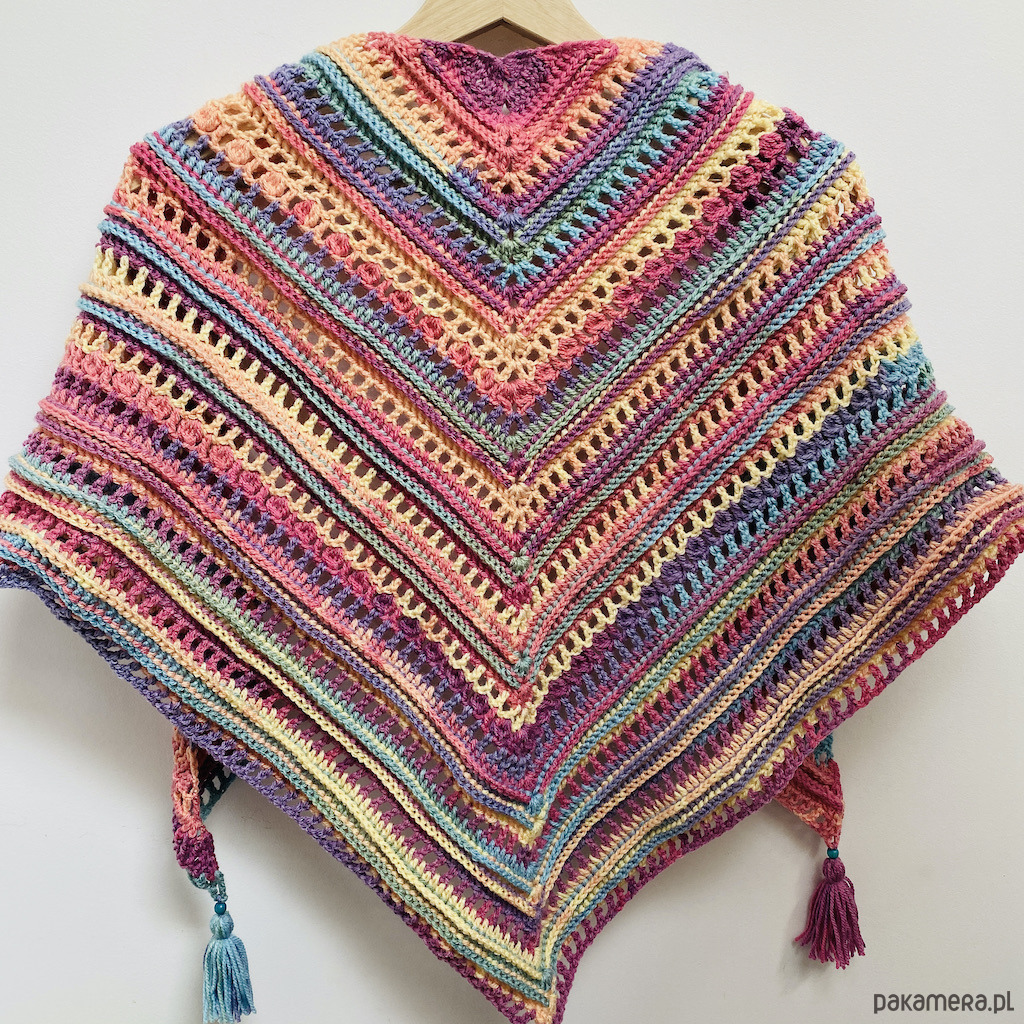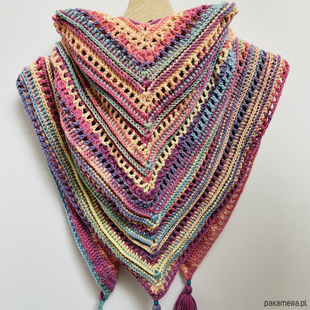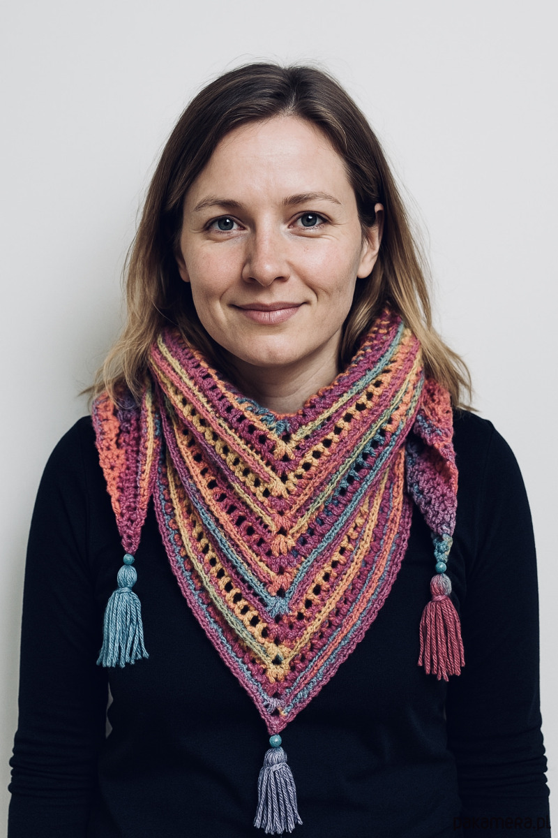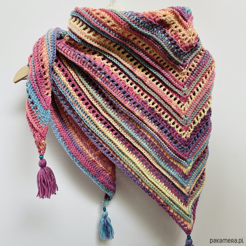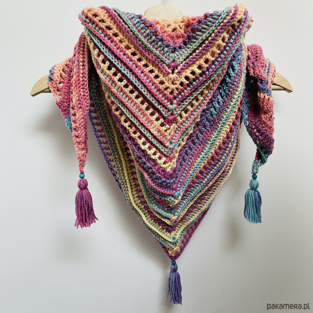 Kolorowa ciepła chusta z chwostami ręcznie robiona