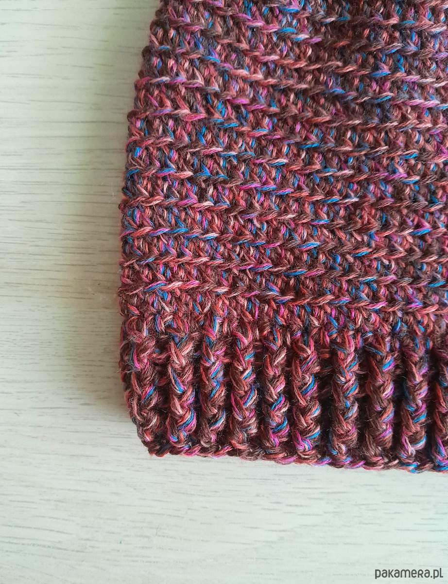 Ręcznie robiona czapka o pięknej, wielokolorowej strukturze, która od razu przyciąga uwagę. Wykonana z wysokiej jakości przędzy 50% wełny merino i 50% akrylu, jest jednocześnie ciepła, oddychająca i przyjemna w dotyku. Idealna na jesień i zimę.