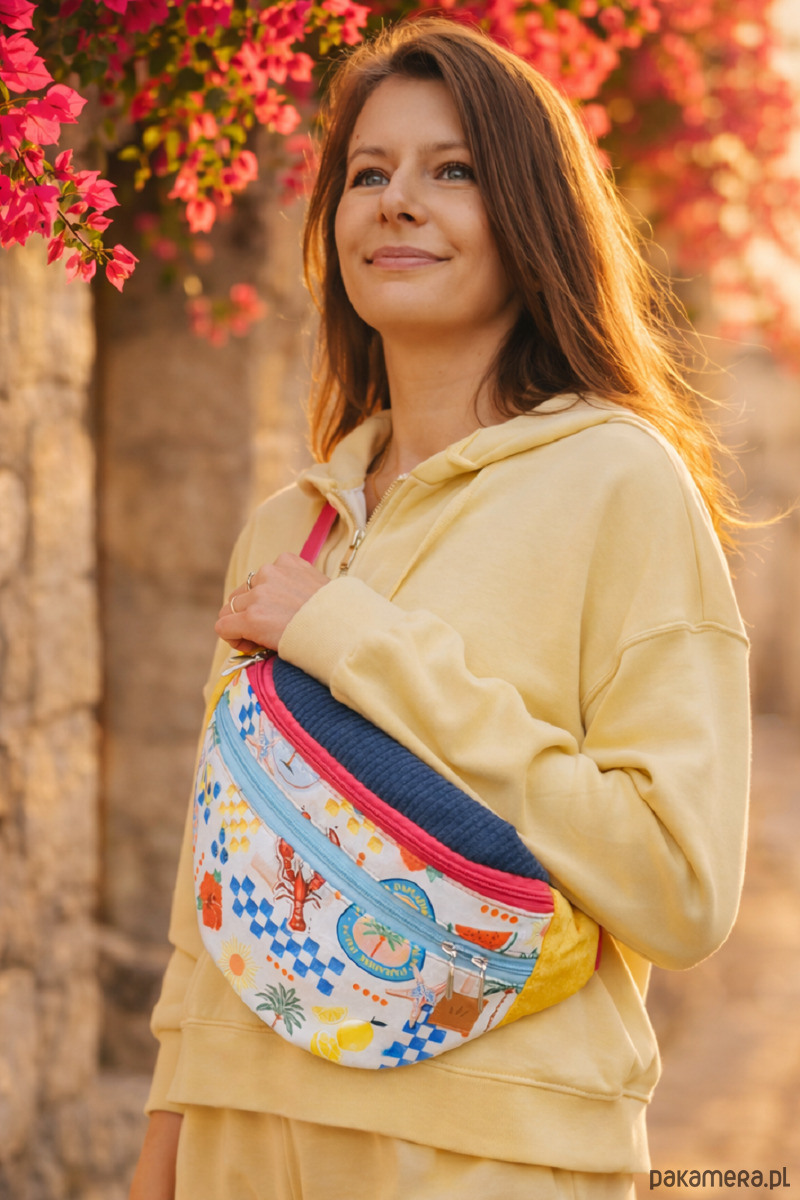Ta wyjątkowa torebka łączy w sobie funkcjonalność i wyrazisty design inspirowany letnim klimatem. Kolorowy wzór pełen motywów wakacyjnych, kontrastowe zamki oraz dopracowane detale sprawiają, że to idealny dodatek dla osób, które lubią wyróżniać się z tłumu.