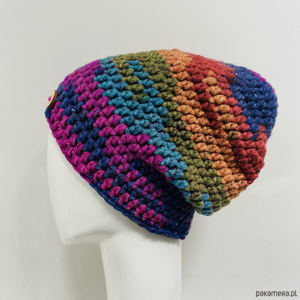 Czapka jest dostępna w jednym egzemplarzu. Tak jak nie ma drugiego identycznego motka, nie ma drugiej identycznej czapki.