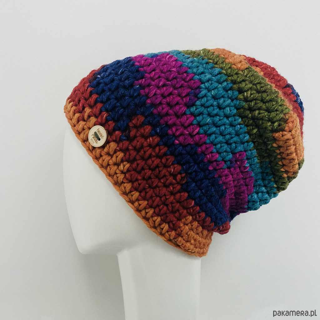 Czapka jest dostępna w jednym egzemplarzu. Tak jak nie ma drugiego identycznego motka, nie ma drugiej identycznej czapki.