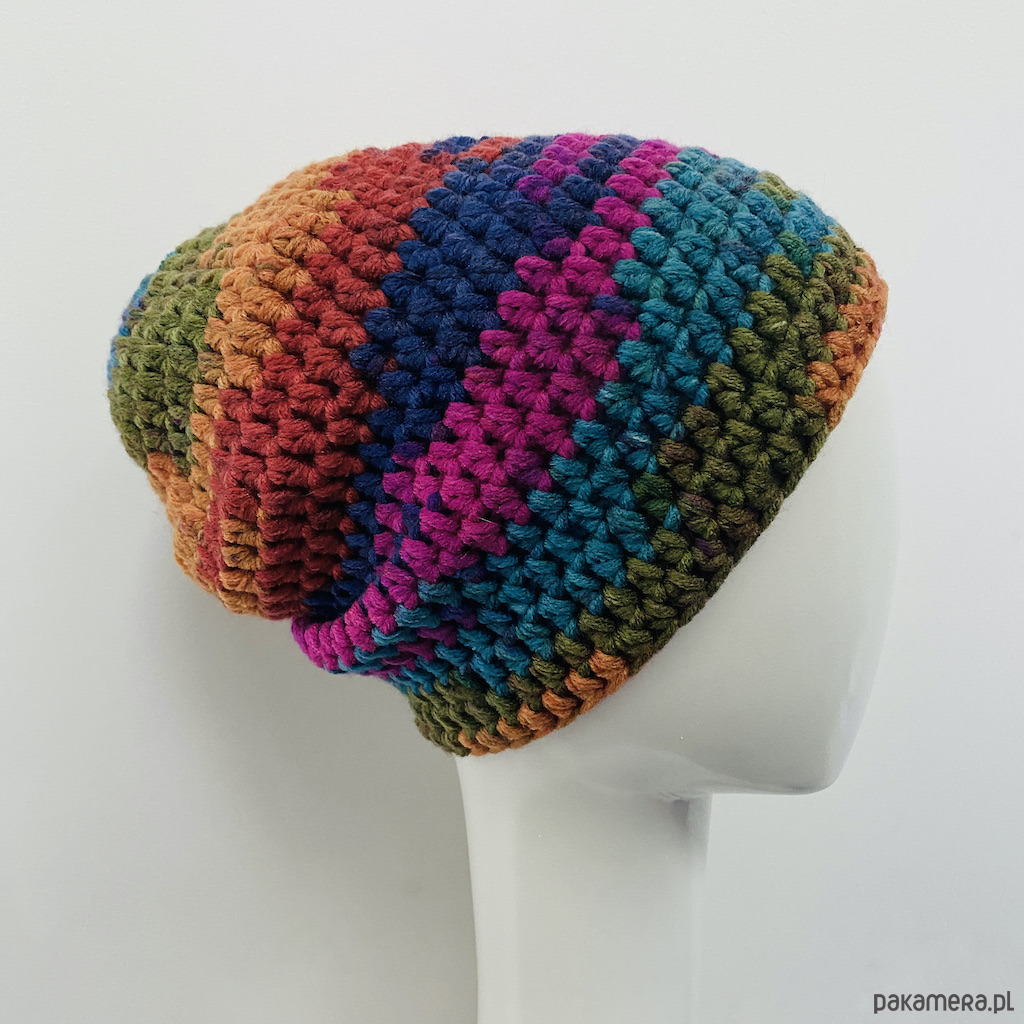Czapka jest dostępna w jednym egzemplarzu. Tak jak nie ma drugiego identycznego motka, nie ma drugiej identycznej czapki.
