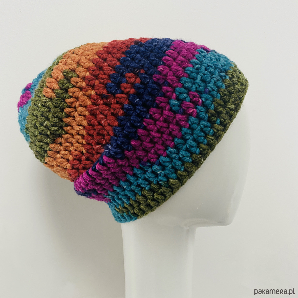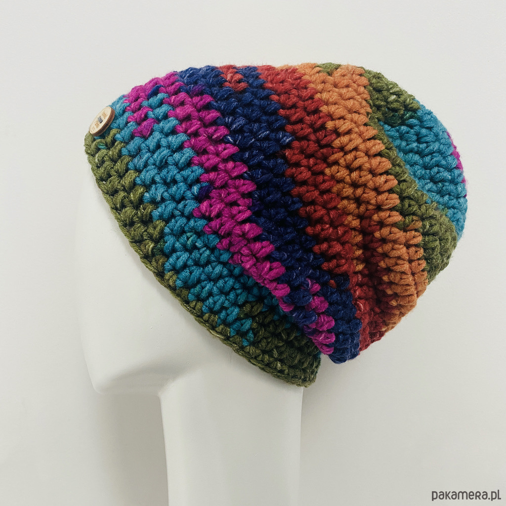 Czapka jest dostępna w jednym egzemplarzu. Tak jak nie ma drugiego identycznego motka, nie ma drugiej identycznej czapki.