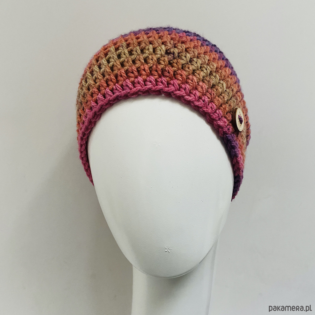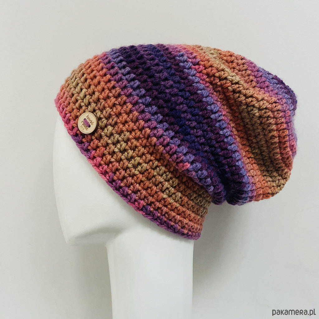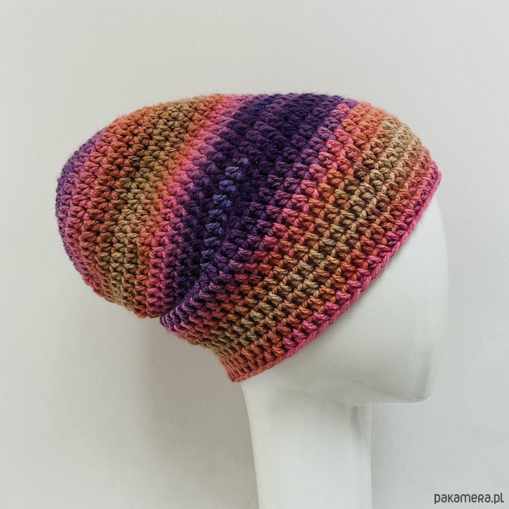 Czapkę wykonałam na szydełku z wysokiej jakości kolorowej włóczki akrylowej, z certyfikatem OEKO-TEX® Standard 100, który potwierdza, że jest bezpieczna dla zdrowia i nie zawiera niebezpiecznych substancji.