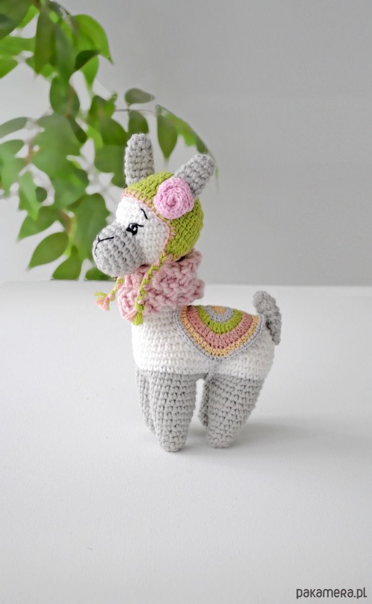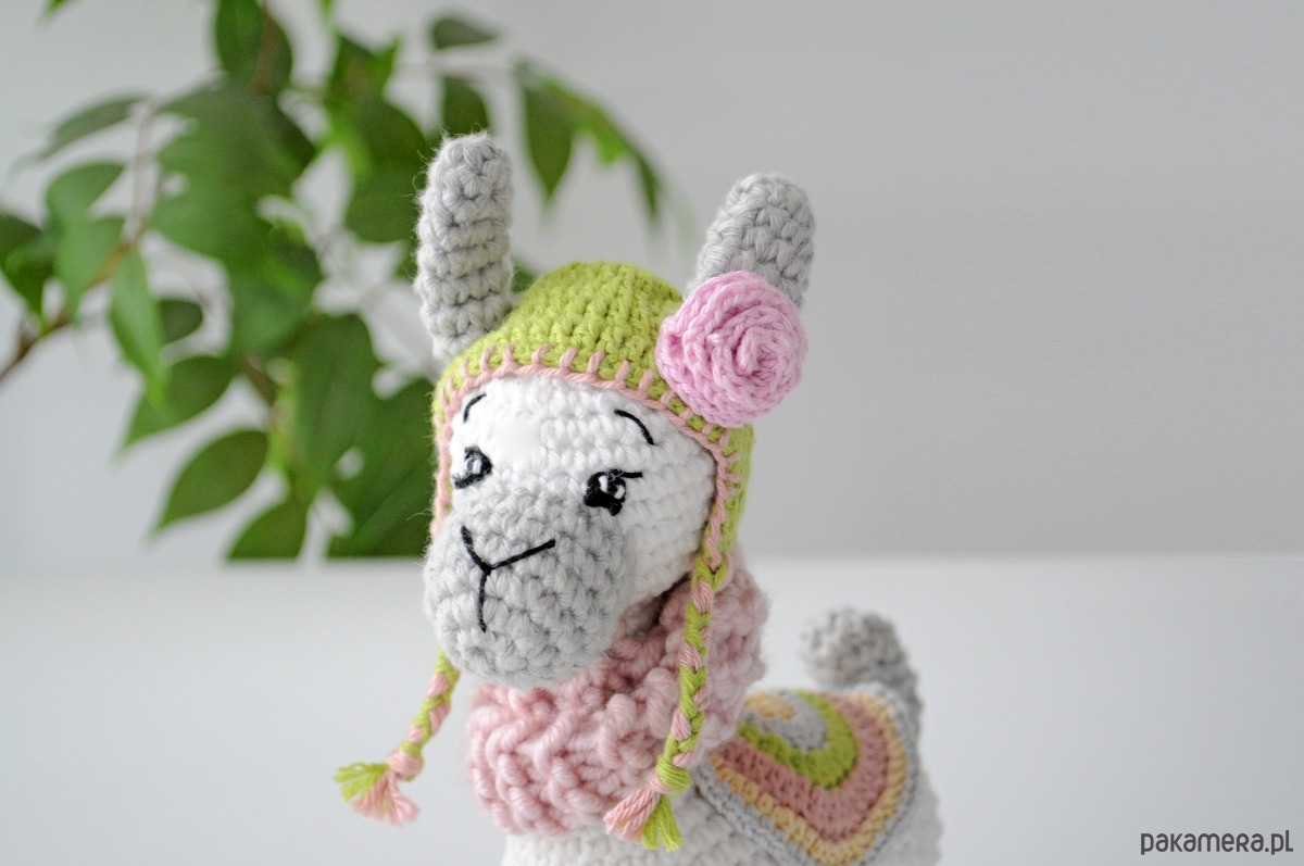 Na urodziny, baby shower, do pokoju dziecięcego lub jako dekoracja wnętrza w stylu boho. Lama wnosi do domu ciepło, uśmiech i odrobinę magii. Lama ma na sobie kocyk i czapkę oraz szalik (te dodatki nie są zdejmowane).
