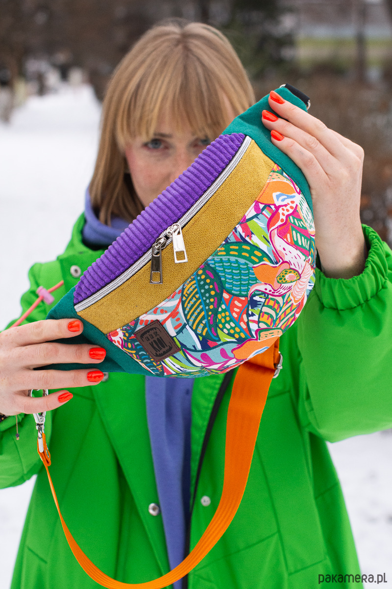 MATERIAŁ: gabardyna, tkanina tapicerska, korek, podszewka bawełniana, pas samoch. kolorowy 38 mm