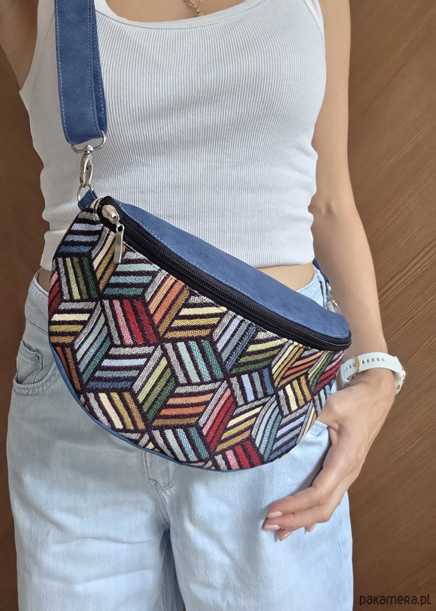 Nerka, saszetka do noszenia na ramię z regulowanym paskiem, zapinana na suwak, w środku mała kieszonka na suwak.