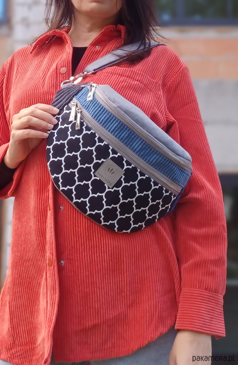 Bardzo duża nerka torebka damska z łączonych materiałów.