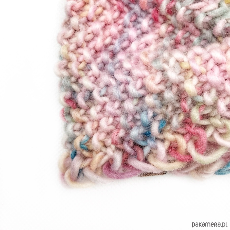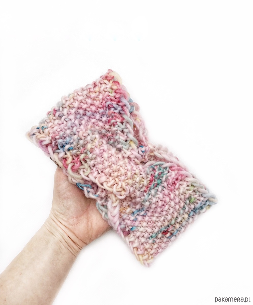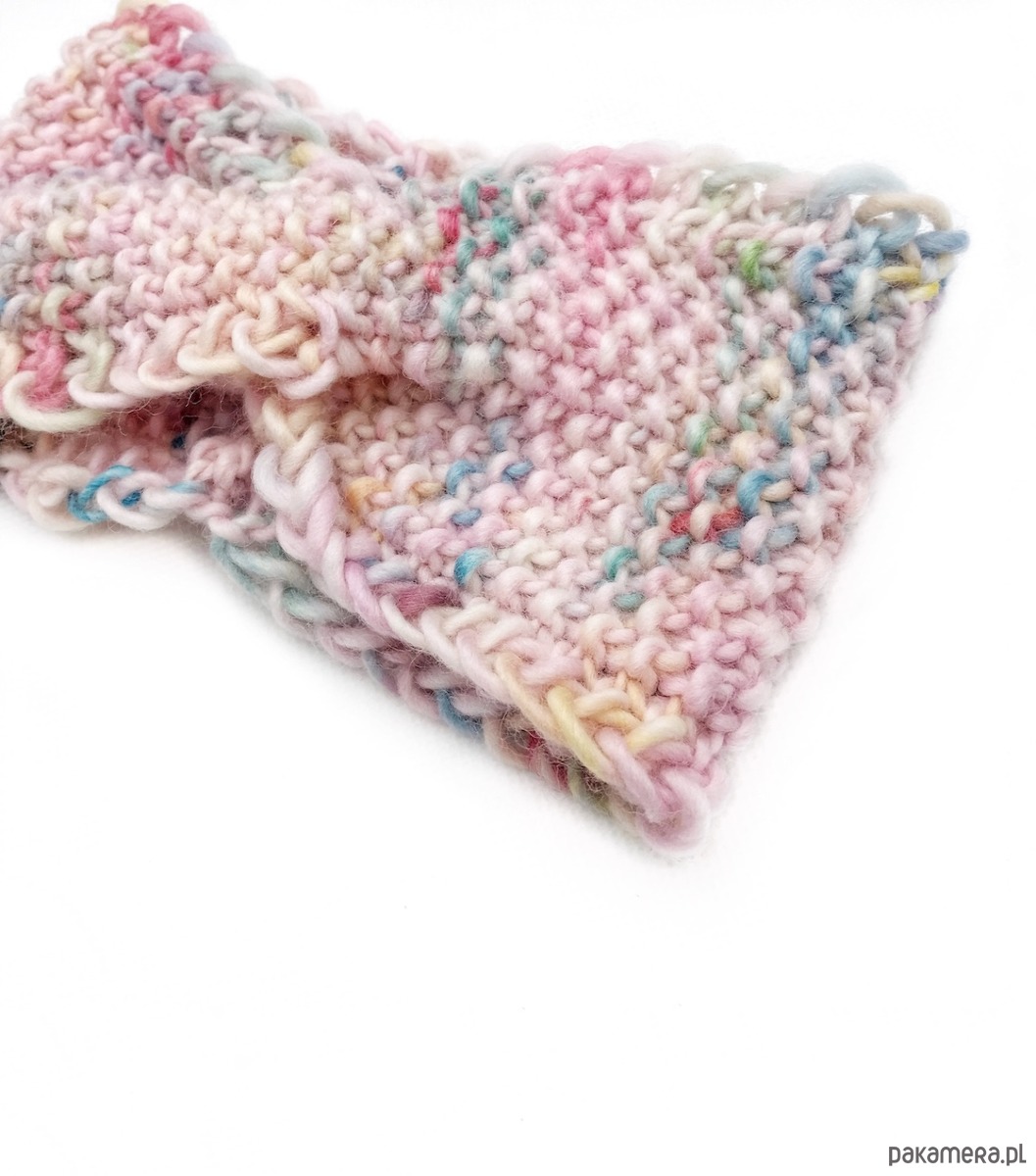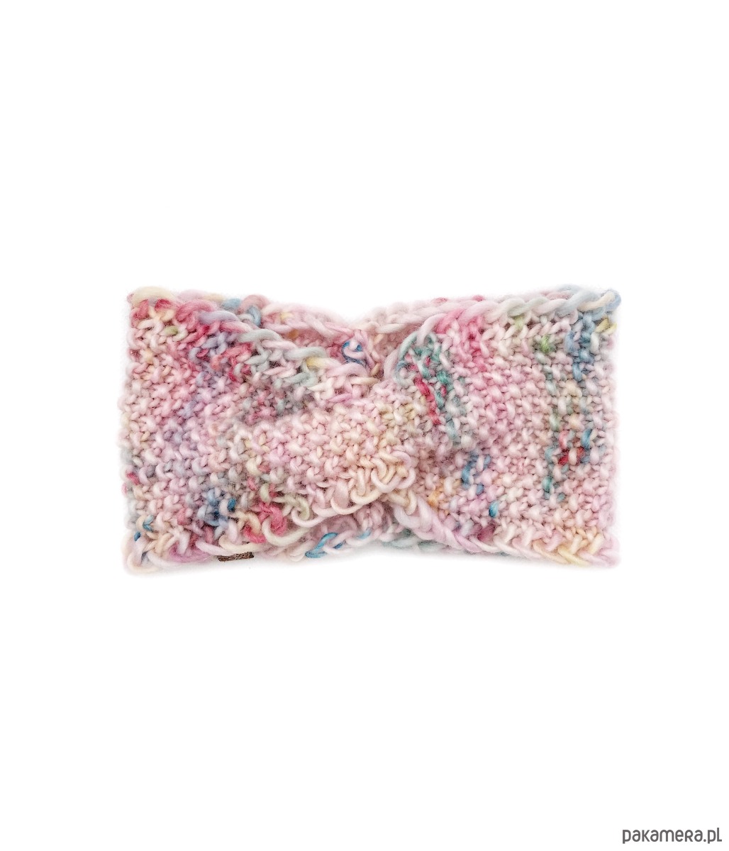 Wełniana opaska to unikat z ręcznie farbowanej wełny peruwiańskiej. Jest w odcieniu pastelowego różu nakrapianego w pastelowe barwy. Każdy egzemplarz jest nieco inny, gdyż rozłożenie kolorów zawsze się różni. Opaska jest miękka, wykonana z miękkiej, 100% wełny peruwiańskiej wysokiej jakości. Lekka, ale dobrze chroni przed zimnem.