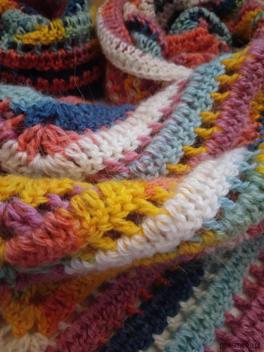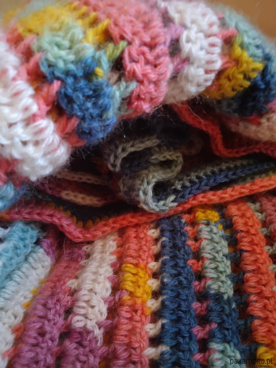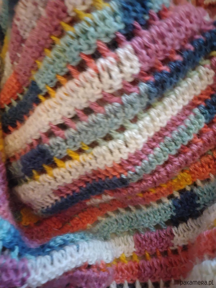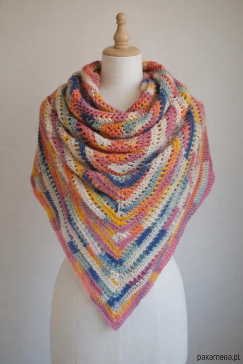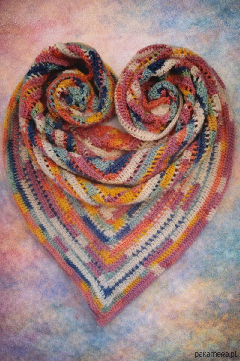 Piękna kolorowa, ciepła, pełna życia chusta z włóczki yarn art angora active. Bardzo miła w dotyku i bardzo ciepła. Doskonała na wieczory jesienne i zimowe. Długość najdłuższego boku 195 cm bez rozciągania; Gorąco polecam. Dla babci, mamy, siostry, koleżanki.
