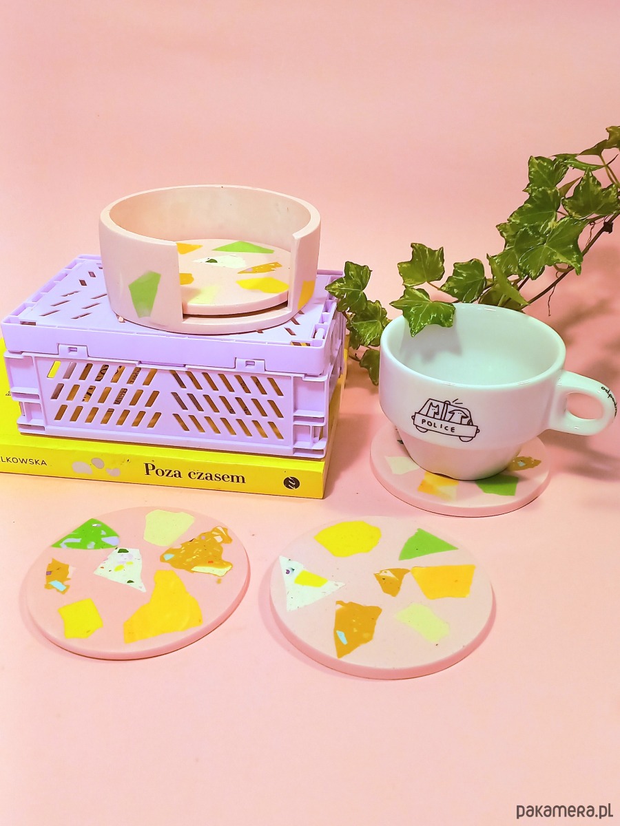 Kolorowa podkładka pod kubek, zestaw, organizer, różowa, duże lastryko, 9 cm