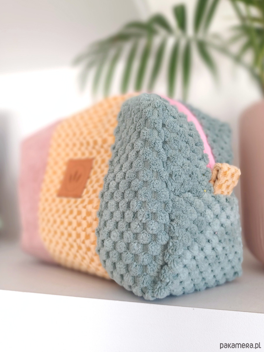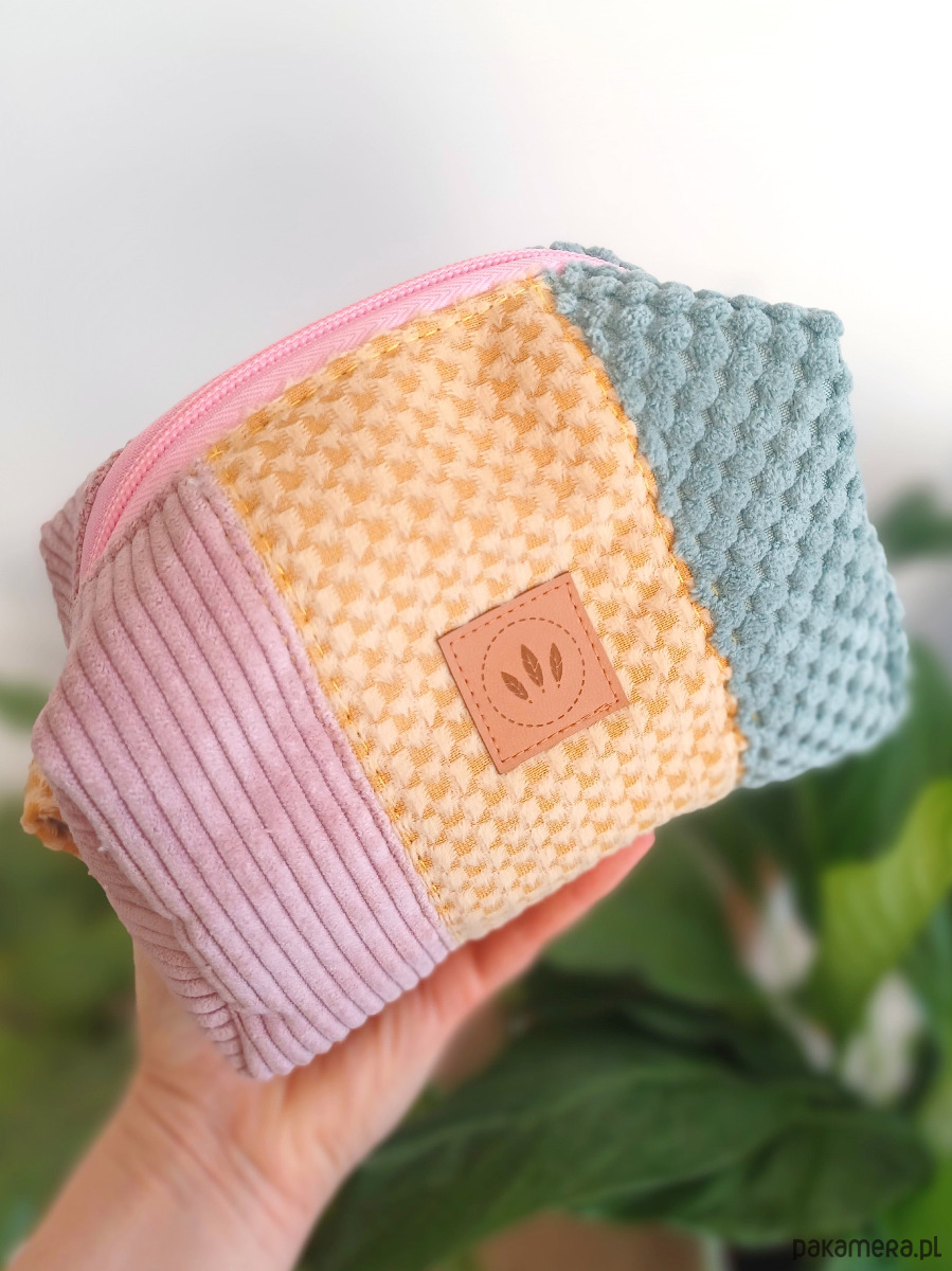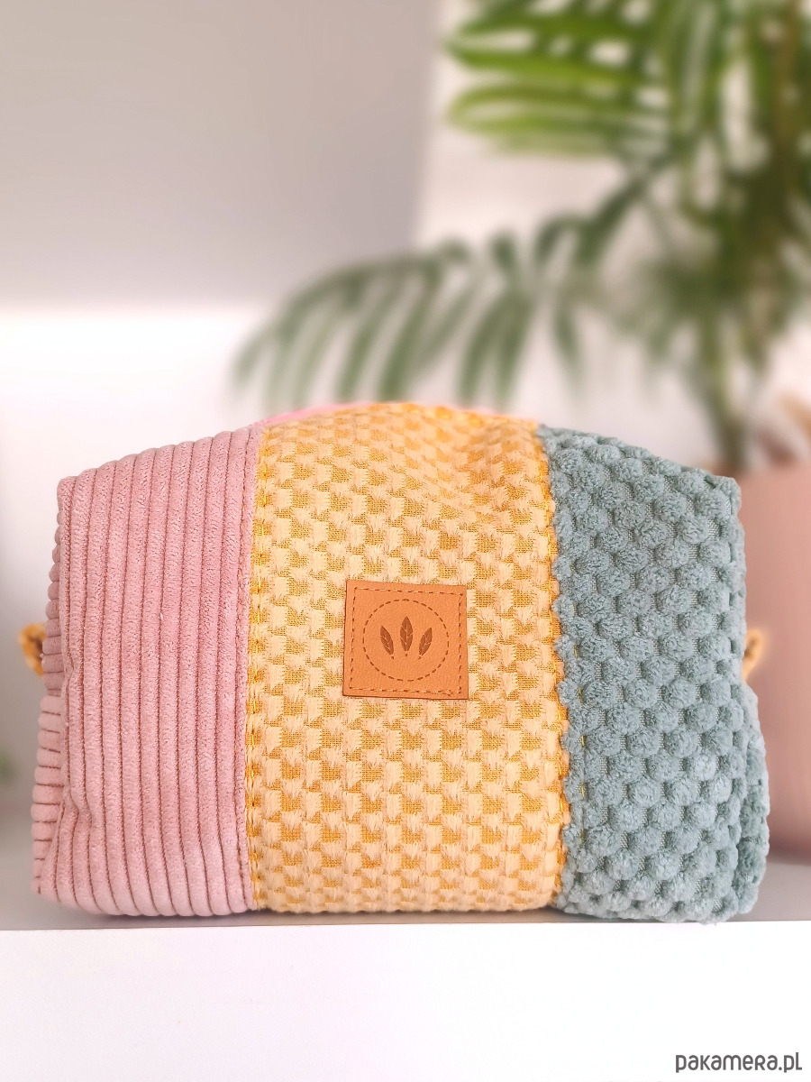 Średniej wielkości kosmetyczka z kolorowych tkanin