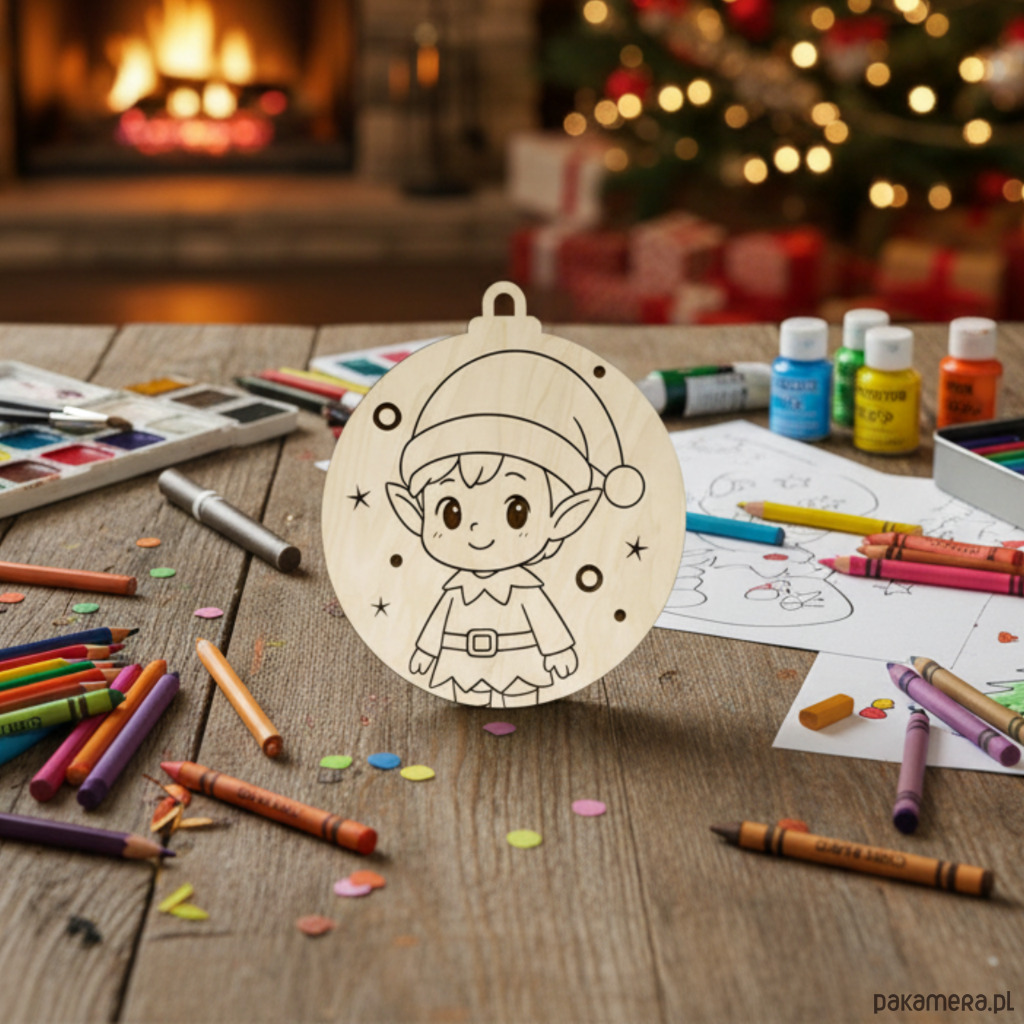 Drewniana Bombka do Malowania Kolorowanka na Święta dla Dzieci ze Sklejki