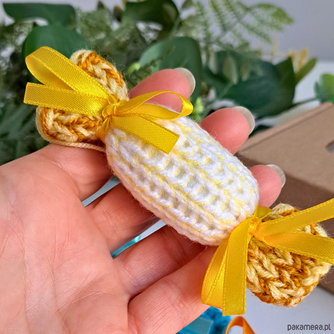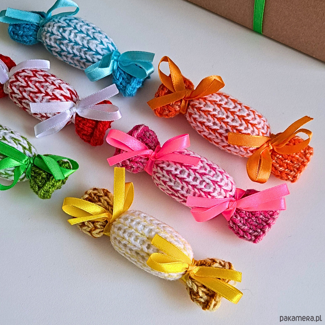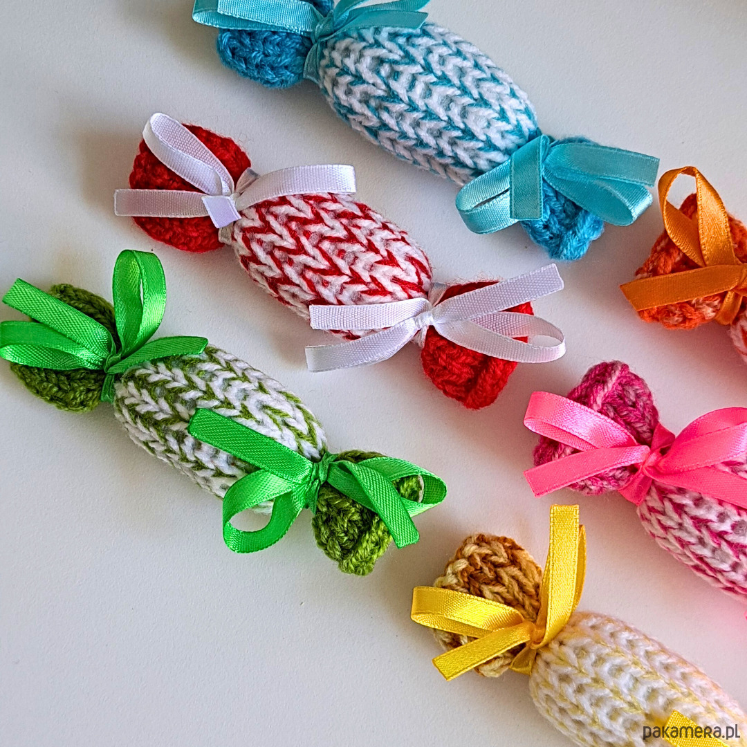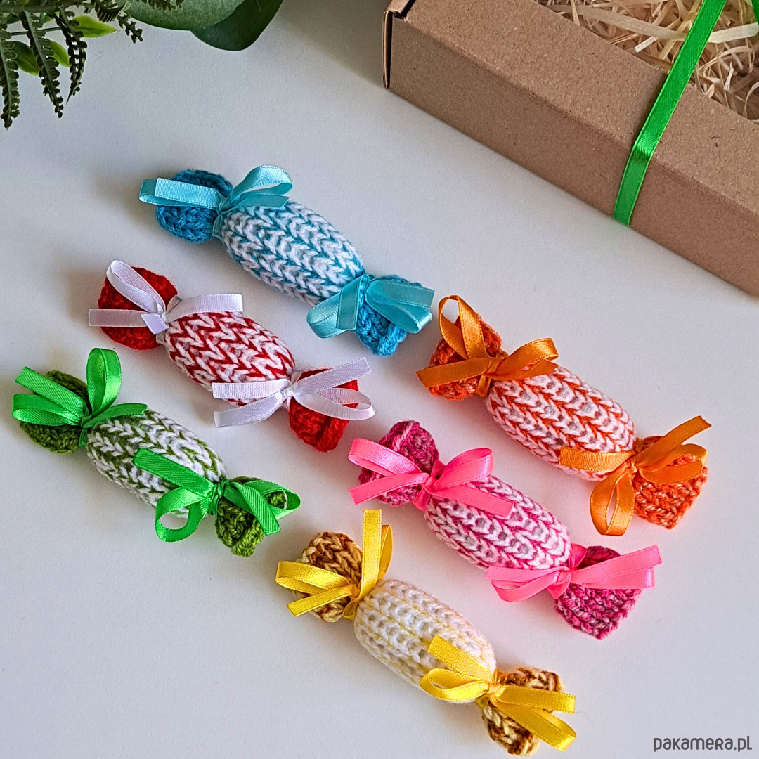 Świąteczne zawieszki na choinkę. Zestaw 6szt. Kolorowe cukierki wykonane na drutach.