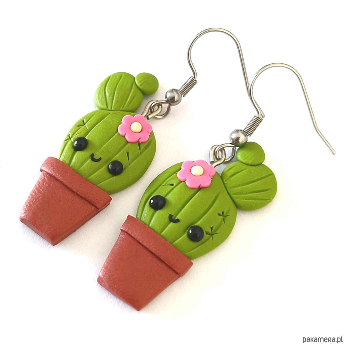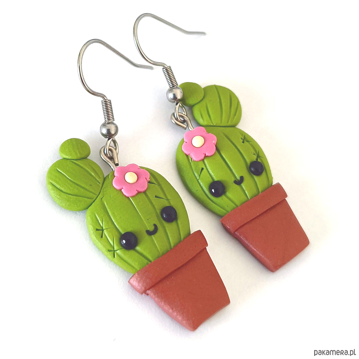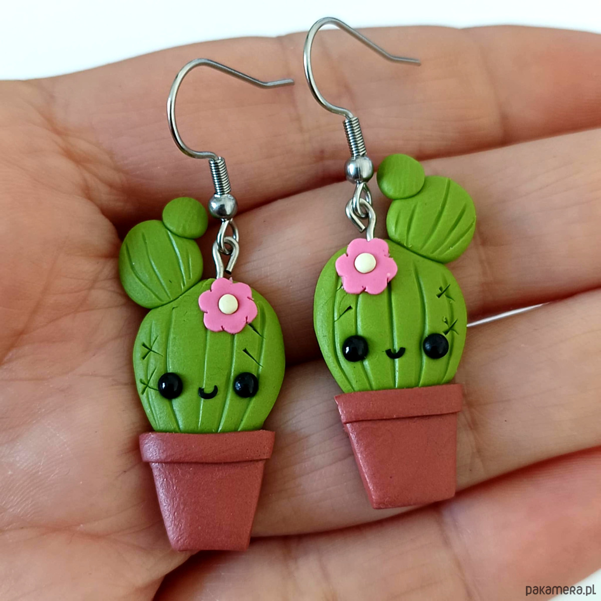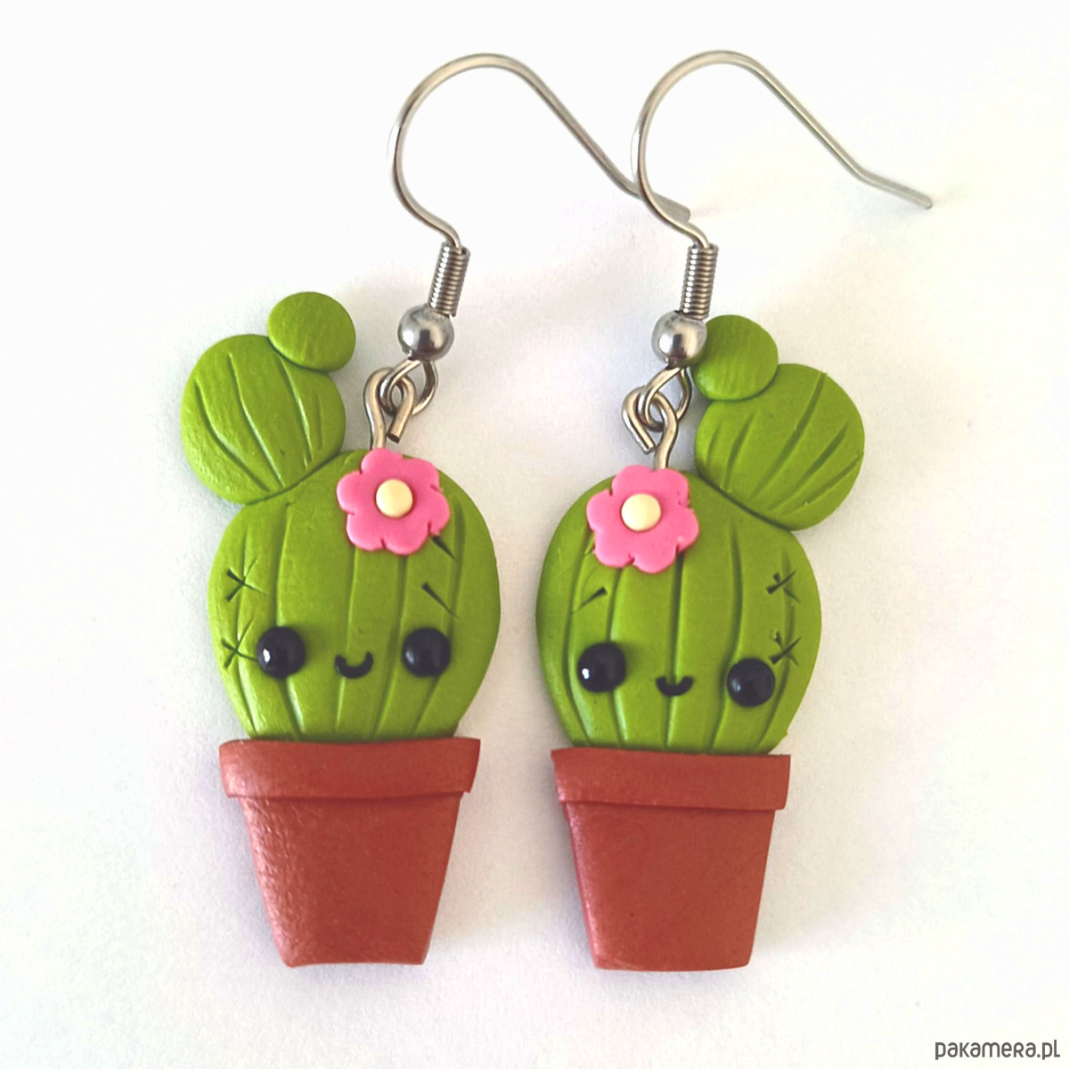 Kolorowe i oryginalne kolczyki w kształcie kaktusów, wykonane ręcznie z modeliny i i stali.