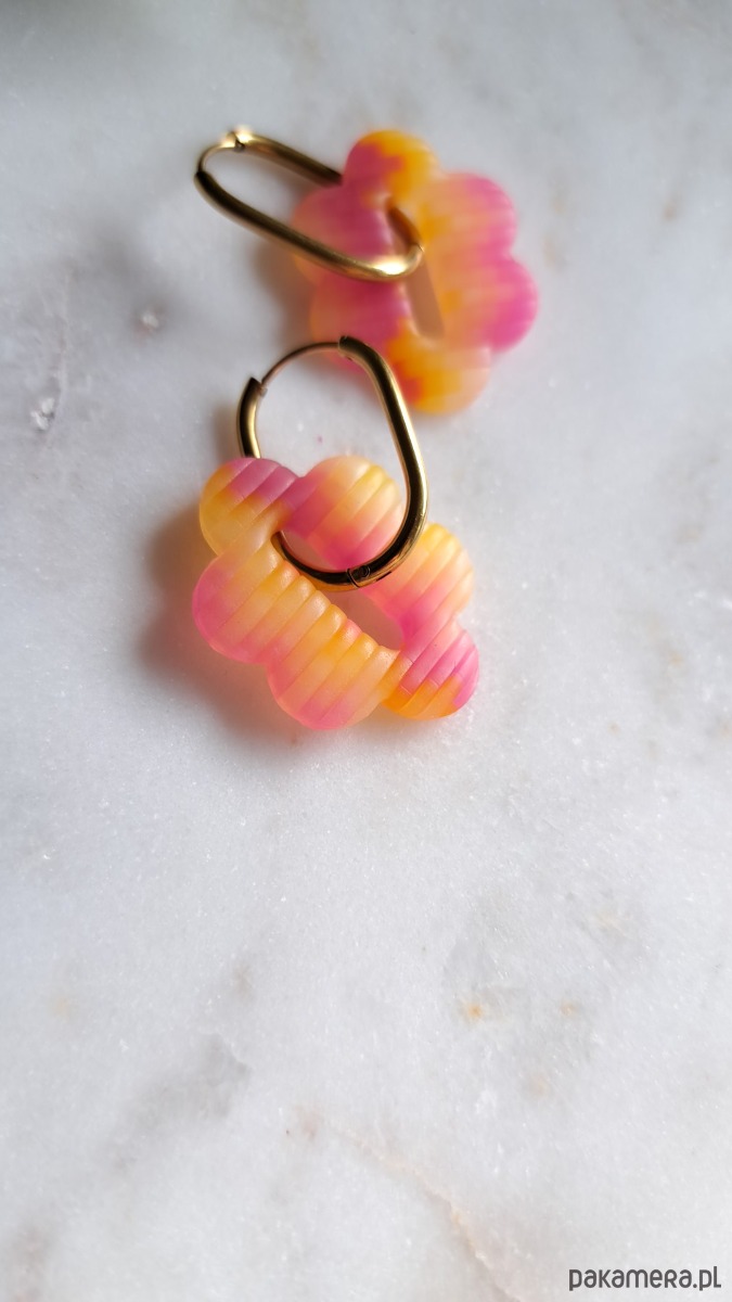 Ręcznie robione kolczyki na sztyftach ze stali chirurgicznej. Kolczyki są zrobione z gliny polimerowej, wypieczonej w idealnych warunkach przez co jest wytrzymała i elastyczna, nie kruszy się i jest super lekka.