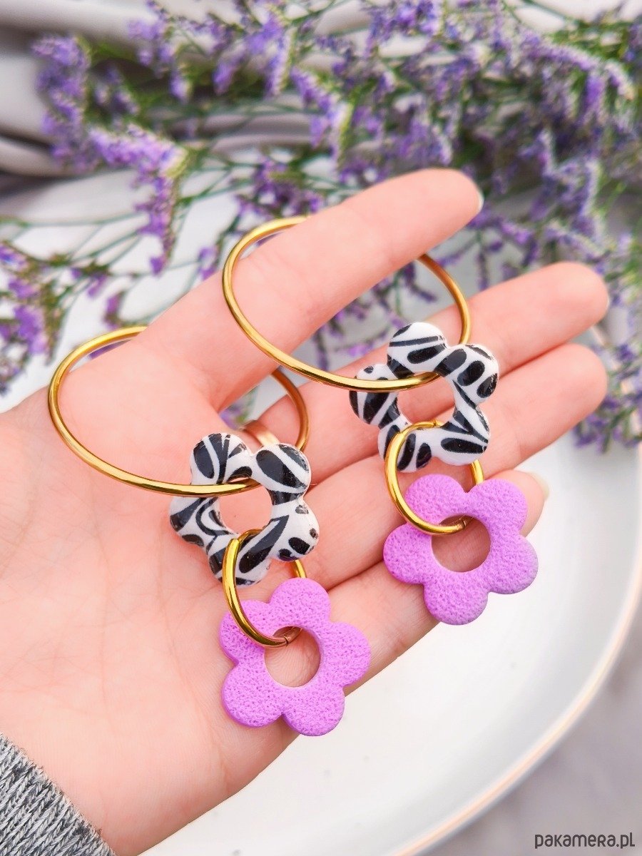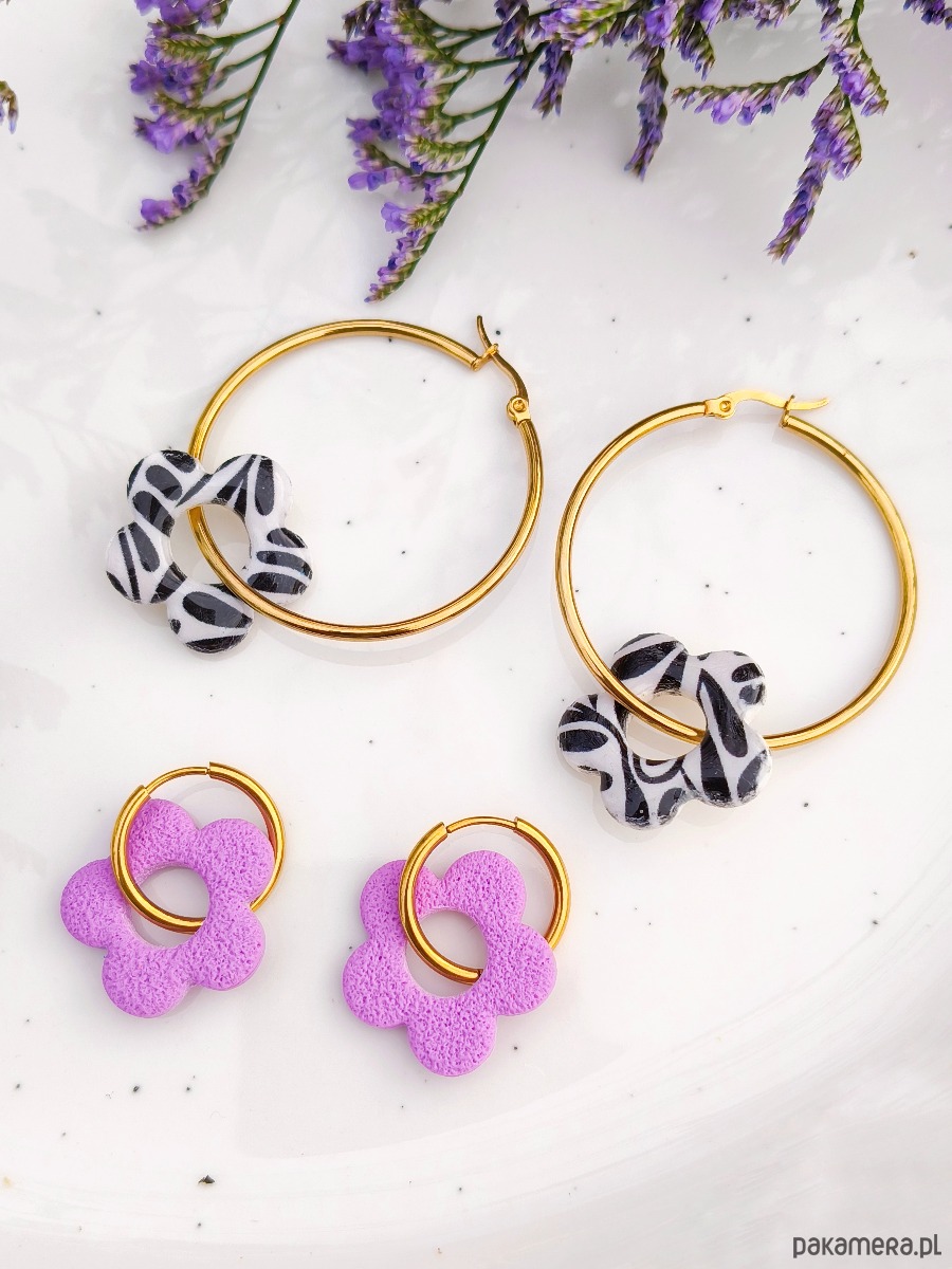 Kolczyki z kwiatuszkami na złotych kółkach to biżuteria, która daje wyjątkowo dużo swobody. Zawieszki można zdejmować i zakładać w dowolnym momencie, dzięki czemu jeden model pozwala stworzyć aż 8 różnych wariantów noszenia - od prostych, minimalistycznych kółek po romantyczne kwiatowe kompozycje.