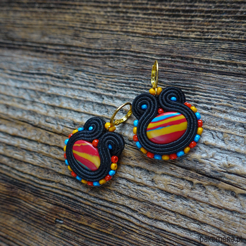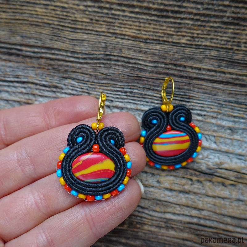 Kolczyki o lekkiej, nowoczesnej formie, wykonane metodą haftu soutache. Centralnym akcentem jest howlit, który dodaje całości subtelnego, naturalnego charakteru.