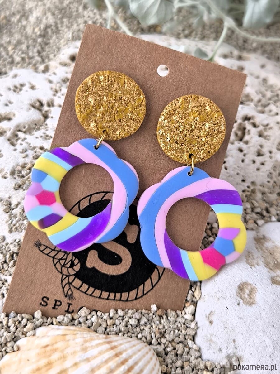Lekkie kolczyki sztyfty-tęczowe kwiatki na zlotkowej zawieszce