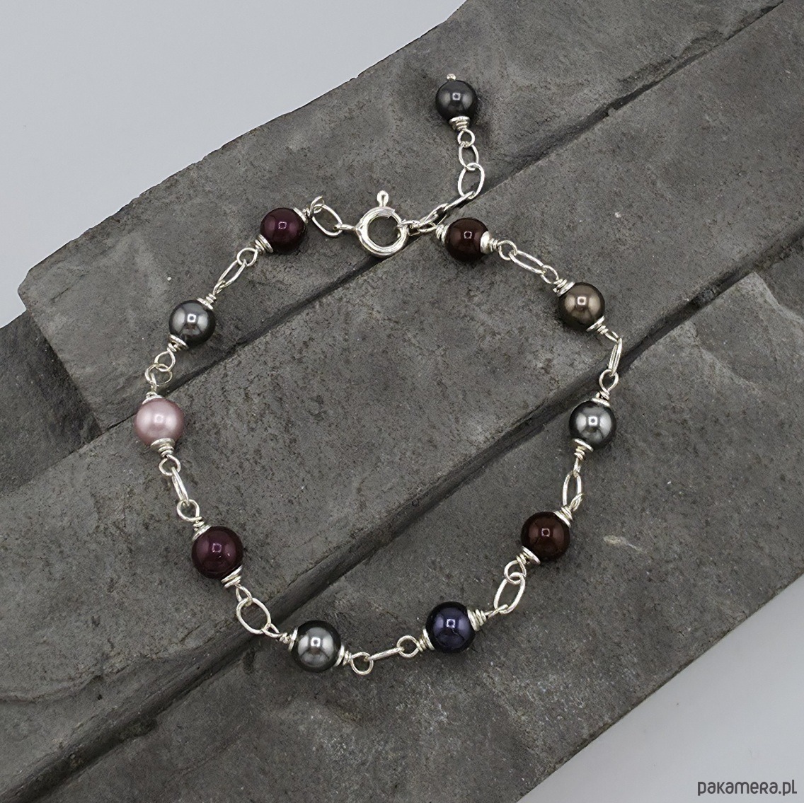 Subtelna, elegancka i kobieca bransoletka na co dzień i nie tylko. Wykonana w całości ze srebra próby 925 oraz kolorowych perełek Swarovski wielkości 6 mm. W mojej galerii klipsy do kompletu. Całkowita długość bransoletki regulowana w zakresie 19,5-21 cm. Ozdobnie zapakowana.