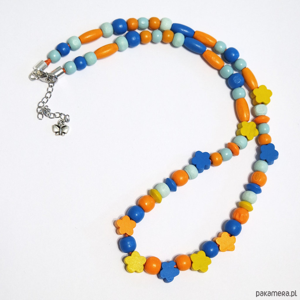 Kolorowe, pomarańczowe, drewniane korale - długie
