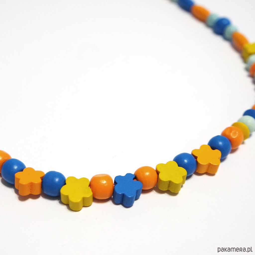 Naszyjnik wykonany z koralików drewnianych nawleczonych na woskowany sznurek.