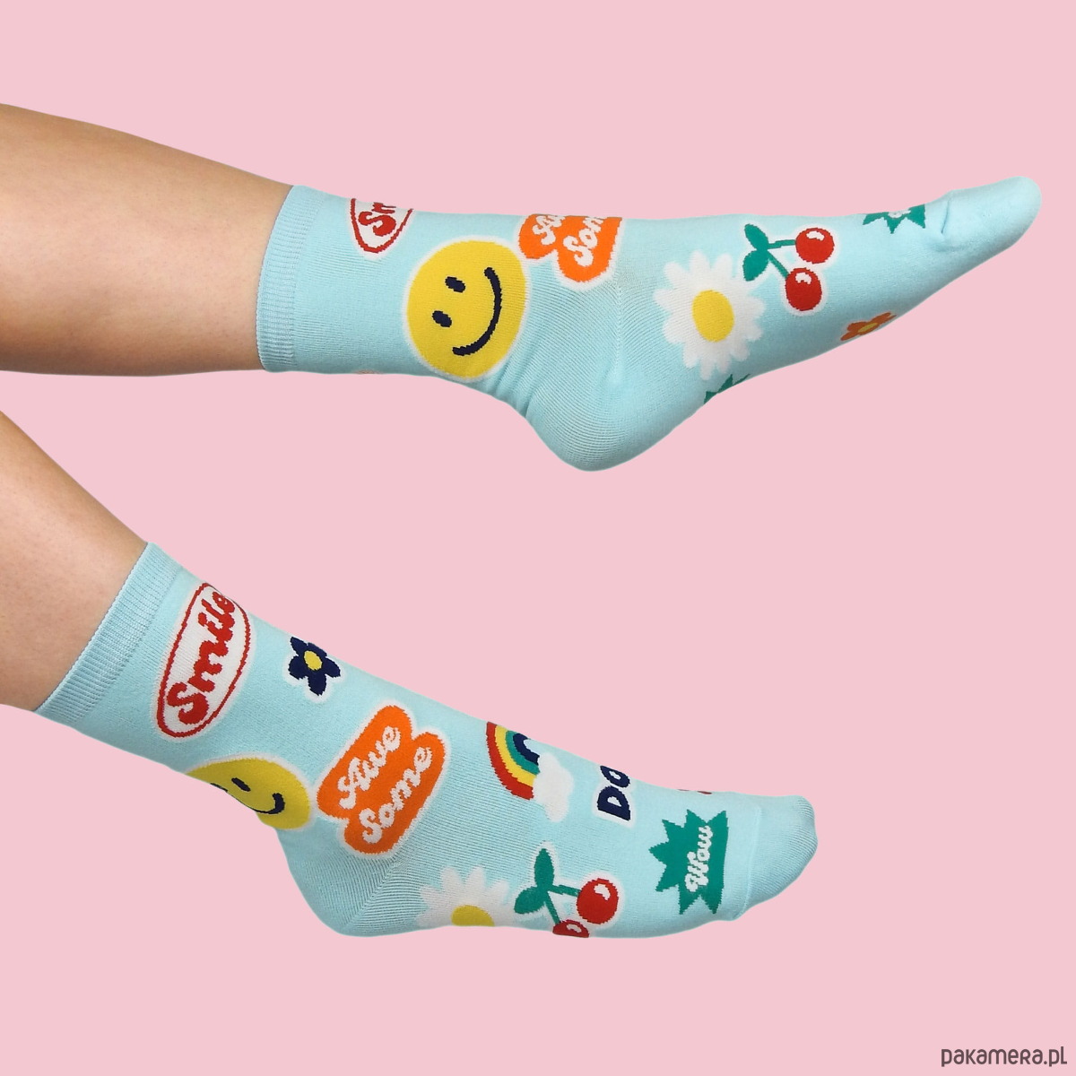 Kolorowe skarpetki w emotki i tęczę