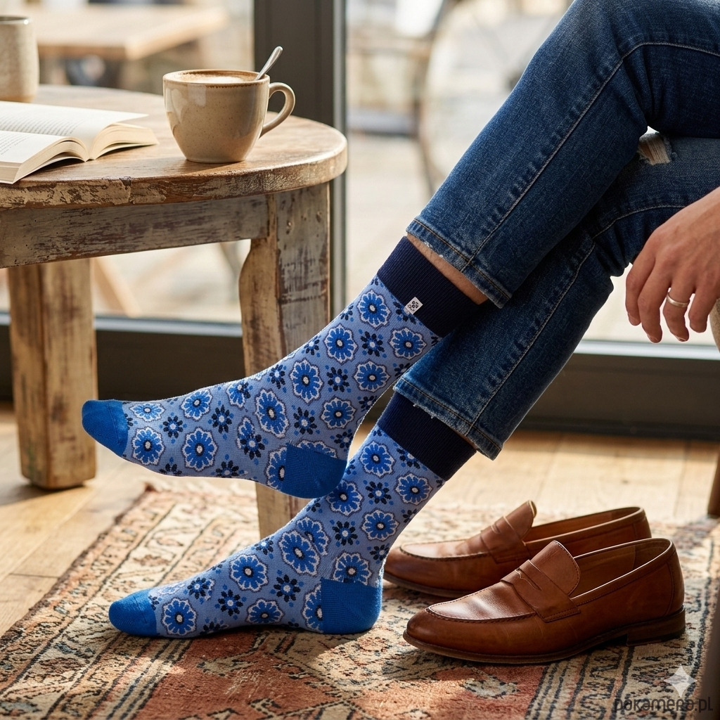 Skarpetki w niebieskie kwiatki to wyjątkowy element garderoby, który łączy w sobie elegancję i zabawę.