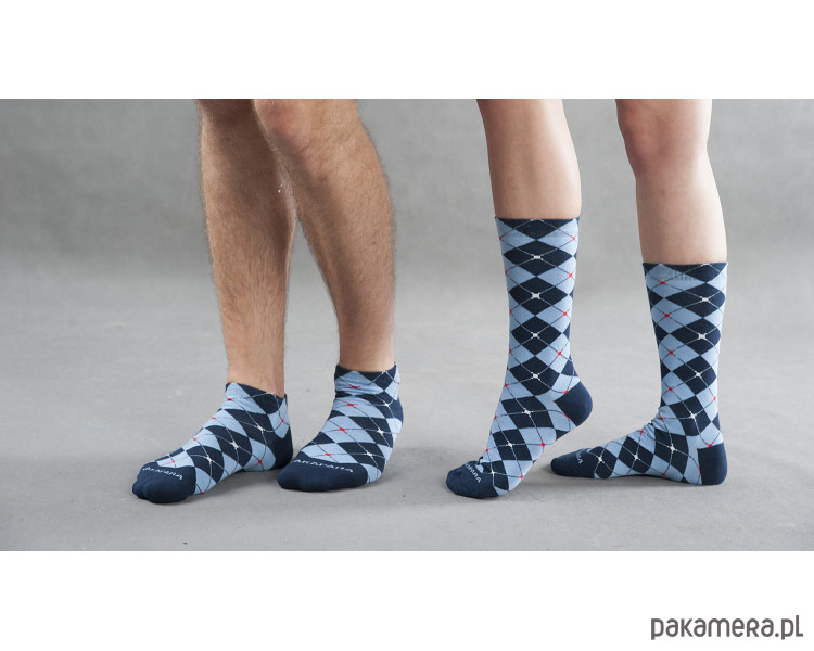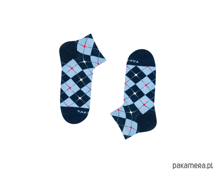 Niebo przybiera różne barwy. Raz zachwyca delikatnym błękitem, a innym razem hipnotyzuje intensywnym granatem. Kolorowe stopki Fabryczna 2m3 w jasno i ciemno niebieskie romby doskonale oddają różne odcienie codzienności. Połączono ze sobą kontrastujące barwy, które razem tworzą spójną całość. To doskonały wybór dla wszystkich osób, ceniących nieoczywiste podejście do klasyki. Nasz sklep ze skarpetkami stwarza możliwość wyposażenia się w modele, które sprawdzą się w wielu rozmaitych stylizacjach.