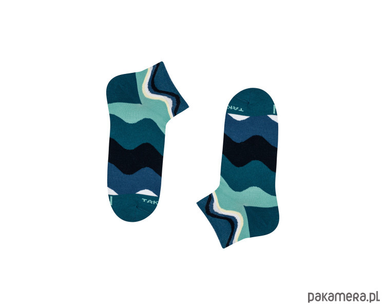 Na lazurowej tafli gromadzi się biała piana, które delikatnie połyskuje w promieniach słońca. Jednak im głębiej się schodzi, tym większy panuje mrok, aż w końcu nastaje nieprzenikniona ciemność. Nasze skarpetki we wzory znakomicie oddają gradację barw morza czy jeziora. To idealne stopki na prezent dla każdego miłośnika wody oraz dla wszystkich tych, którzy doceniają dozę tajemnicy. Tak fajne skarpetki kradną serca zarówno kobiet, jak i mężczyzn. Produkt zachwyca niebanalnym wyglądem, ale także miękkim materiałem, który pozwala skórze swobodnie oddychać.