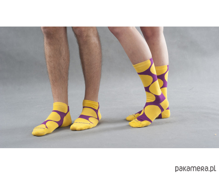 Coraz więcej osób docenia nieoczywiste połączenia kolorystyczne. Barwy, których standardowo nie zestawiłoby się ze sobą, nagle tworzą prawdziwie wyjątkową całość. Nasz sklep ze skarpetkami oferuje jedyne w swoim rodzaju modele, które błyskawicznie skradną serca nawet najbardziej wymagających klientów. Żółty i fioletowy stworzyły niezwykły duet, który jest doceniany zarówno przez kobiety, jak i mężczyzn. Kolorowe stopki zachwycają nie tylko urodą, ale także miękkim materiałem. Delikatna bawełna gwarantuje wysoki poziom komfortu.