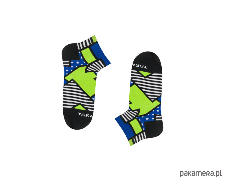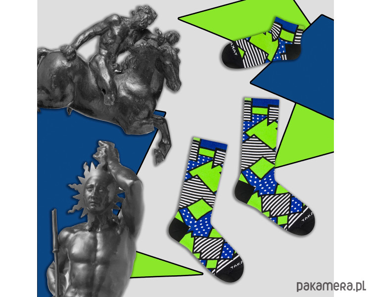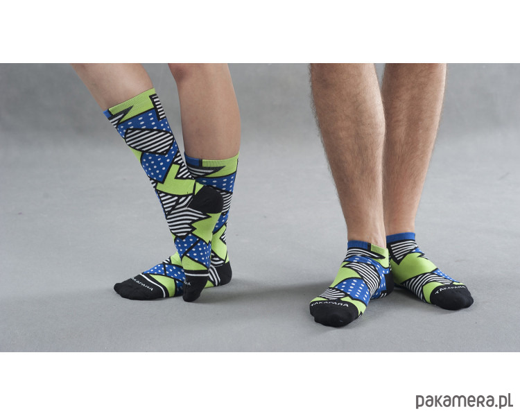 Kiedy człowiek wykona już wszystkie codzienne obowiązki, wreszcie przychodzi czas na zabawę. Migoczące światła zachęcają do tego, aby ruszyć na parkiet i zapomnieć o wszystkich troskach. Tutaj nikt nie zwraca uwagi na to, czy ktoś jest dobrym tancerzem. Liczy się dobra zabawa. Pan w czarnej koszulce może wykonywać ruchy przypominające robota, a pani w niebieskiej sukience wirować precyzyjnie niczym balerina. Nasze kolorowe stopki Piotrkowska 5m2 odznaczają się podobną różnorodnością. Łączą ze sobą wzory i kolory, które na pozór zbyt odmienne, tworzą jednak absolutnie wyjątkową całość. Tak fajne skarpetki sprawią, że zabawa stanie się jeszcze lepsza.