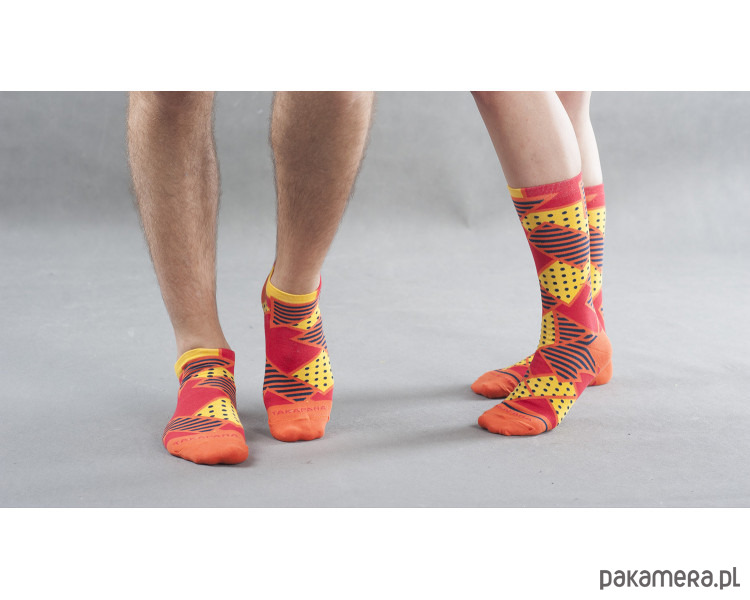 Czasem trudno zdecydować się na jeden wyrazisty motyw. Chciałoby się założyć spodnie w paski, ale koniecznie wraz z koszulką w kropki i z neonową bluzą. A dlaczego nie? Teraz można wszystko połączyć i to za sprawą tylko jednego dodatku. Kolorowe stopki Piotrkowska 5m5 zachwycają swoim nieszablonowym wyglądem. Błyskawicznie przyciągają wzrok i sprawiają, że człowiek wyróżnia się z szarego tłumu. To doskonałe skarpetki na prezent dla osoby, która dobrze czuje się we własnej skórze i nie boi się bycia oryginalnym.