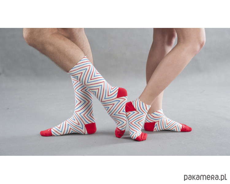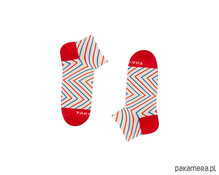 Niektóre geometryczne wzory są w stanie przyprawić o lekki zawrót głowy. Gdy człowiek przez dłuższą chwilę wpatruje się w nasze kolorowe stopki, ma wrażenie, jakby podlegał hipnozie. Na szczęście już całkiem na trzeźwo można przyznać, że chwilowe oszołomienie wynikało jedynie z urzeczenia niezwykłą urodą produktu. Tak fajne skarpetki są w stanie zachwycić wszystkie osoby, niezależnie od wieku i płci. Każdy docenia niebanalne wzornictwo i precyzyjne wykonanie stopek Skrzywana 9m1 od Takapara.