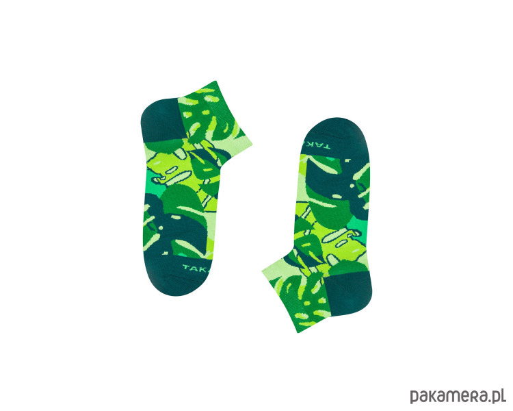 Czasem nie potrzeba wiele, aby człowiek poczuł się niczym w samym sercu tropikalnego lasu. Kolorowe skarpetki znakomicie oddają wyjątkowy czar tamtejszej flory. Butelkowa zieleń splata się z seledynem, tworząc jedyne w swoim rodzaju połączenie. Dodatkowo takie zestawienie barw doskonale koi nerwy i pomaga ruszyć w nowy dzień ze znacznymi pokładami energii. Skarpetki we wzory mogą stać się uzupełnieniem prostego stroju biurowego, ale także ekstrawaganckiej sukienki. Prezentowany model zachwyca dorosłych, ale sprawdza się również jako skarpetki dziecięce.