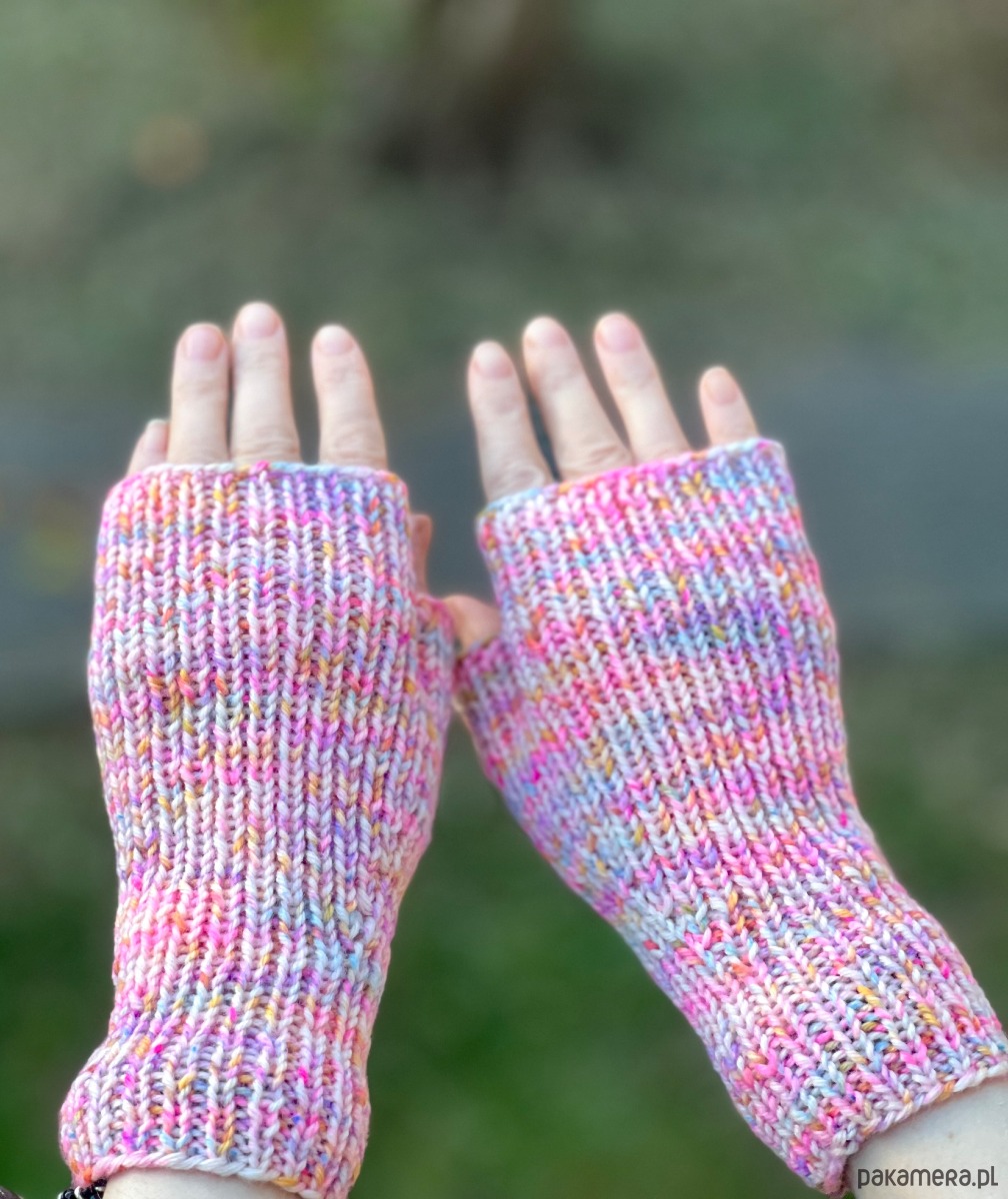 Kolorowe mitenki wykonane z wełny skarpetkowej superwash. Są wyjątkowo wytrzymałe na przetarcia, elastyczne i cieplutkie z lekkim wełnianym puszkiem. Ładnie dopasują się do dłoni. Mitenki są idealne na okres przejściowy wiosna / jesień. Ogrzeją Twoje dłonie a jednocześnie umożliwią korzystanie z telefonu.