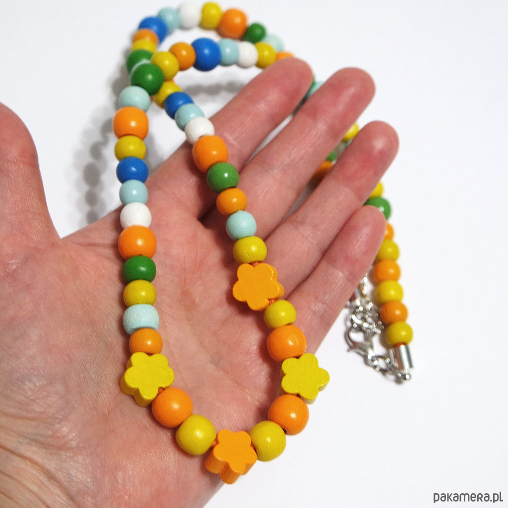 Kolorowe, żółte, drewniane korale - długie