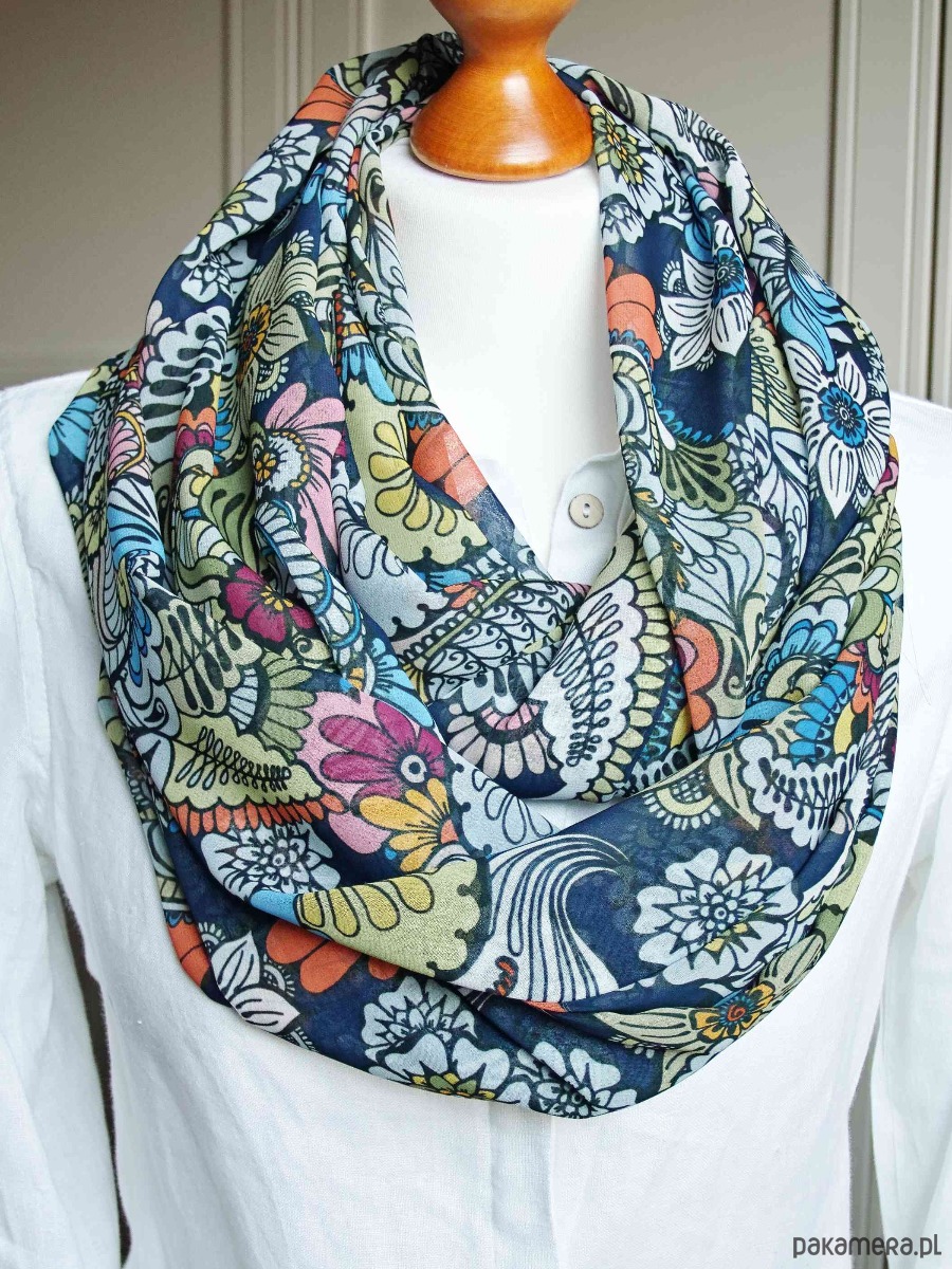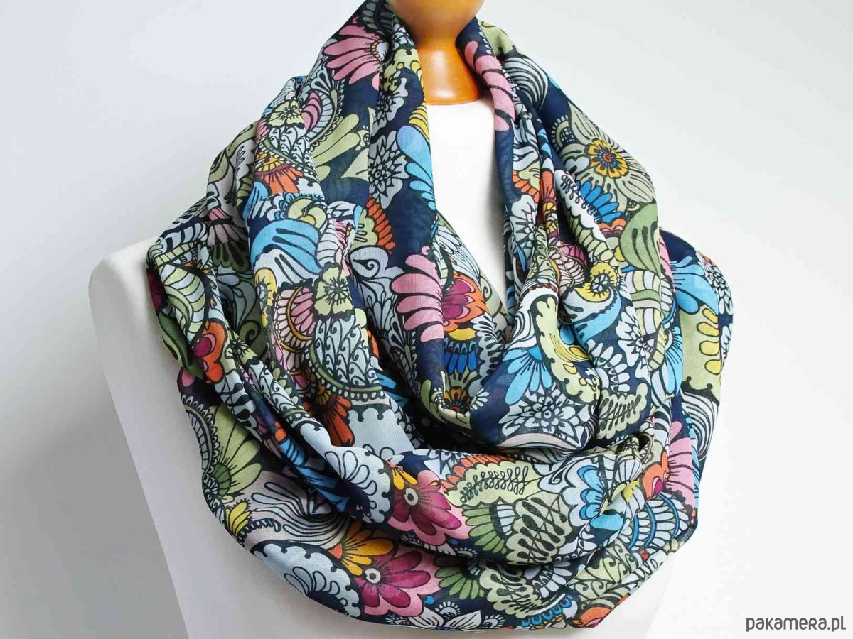 Kolorowy komin w KWIATY wiosenny komin szal damski